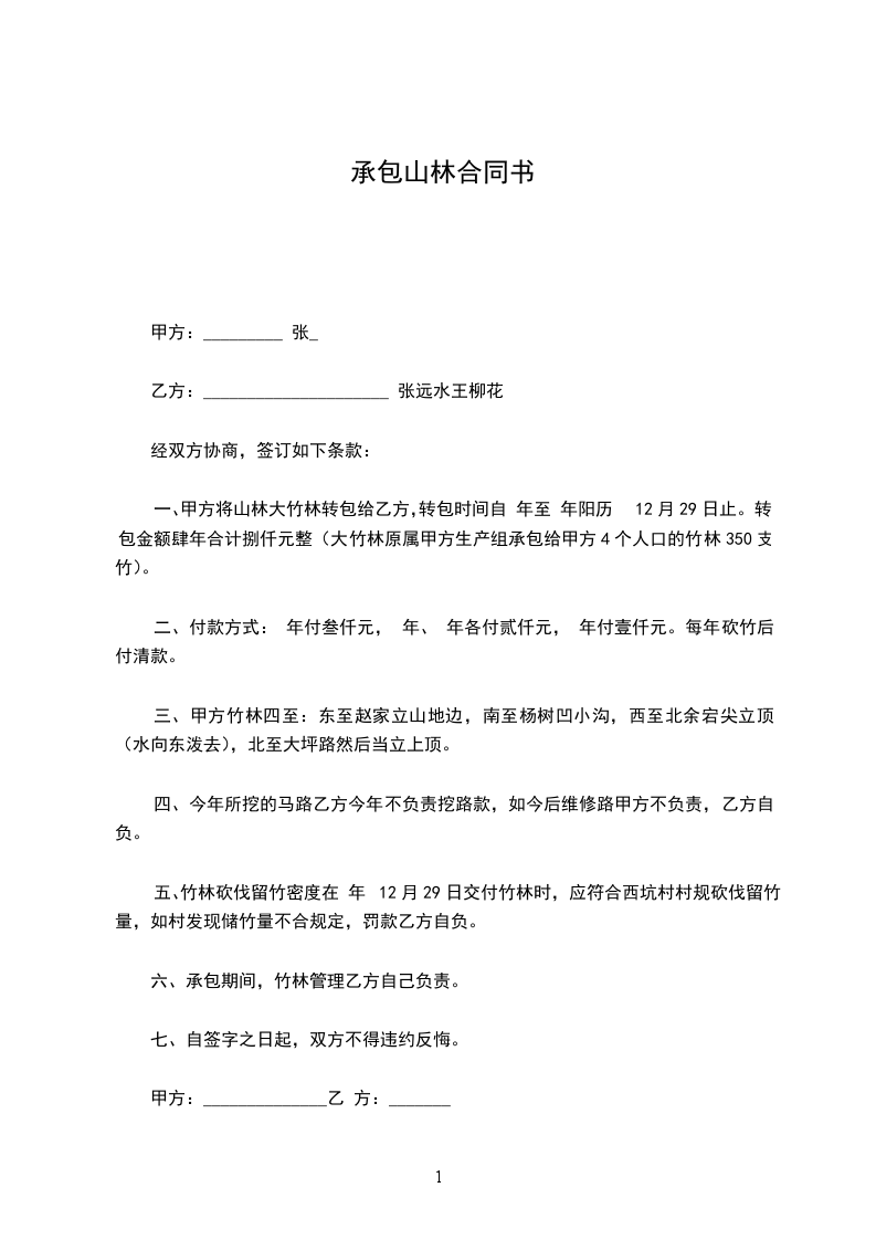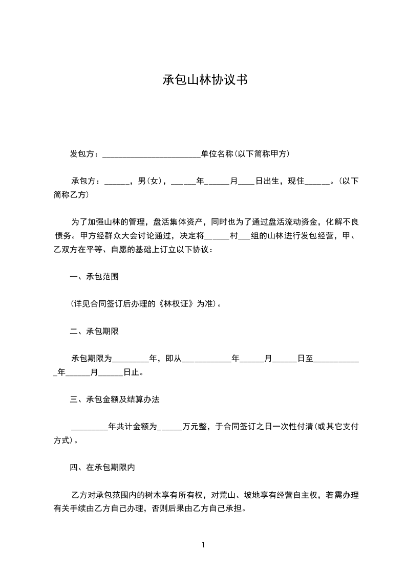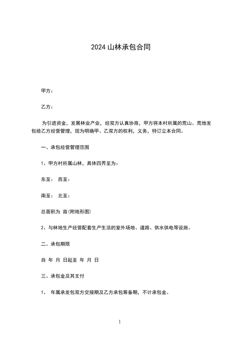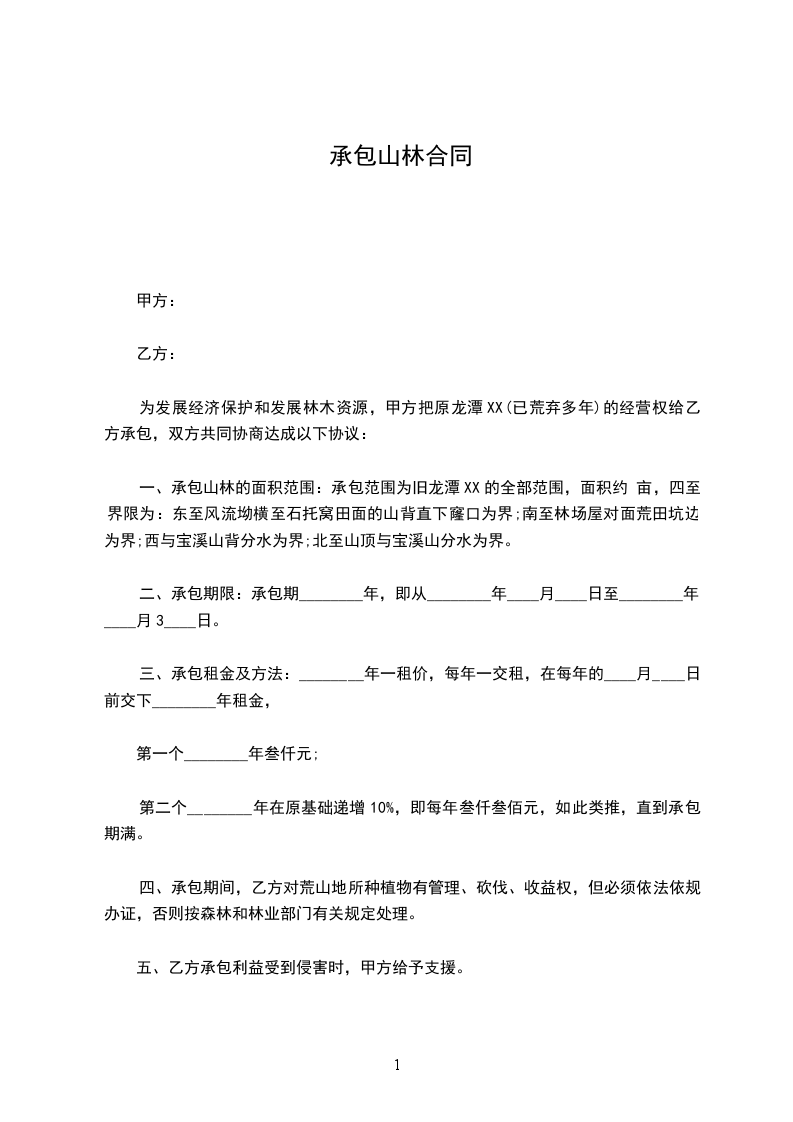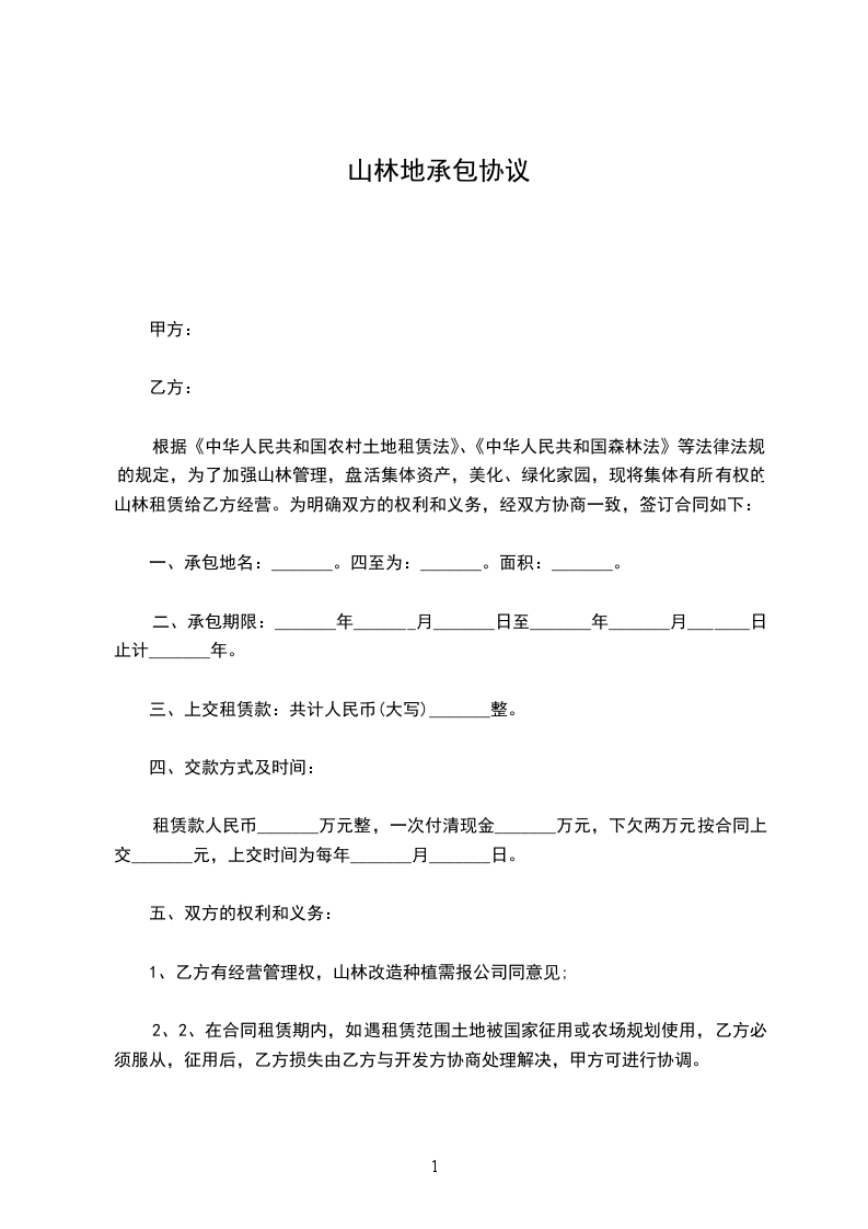 为引进资金,发展林业产业,经双方认真协商,甲方将本村所属的荒山、荒地发包给乙方经营管理,现为明确甲、乙双方的权利,义务,特订立本合同。