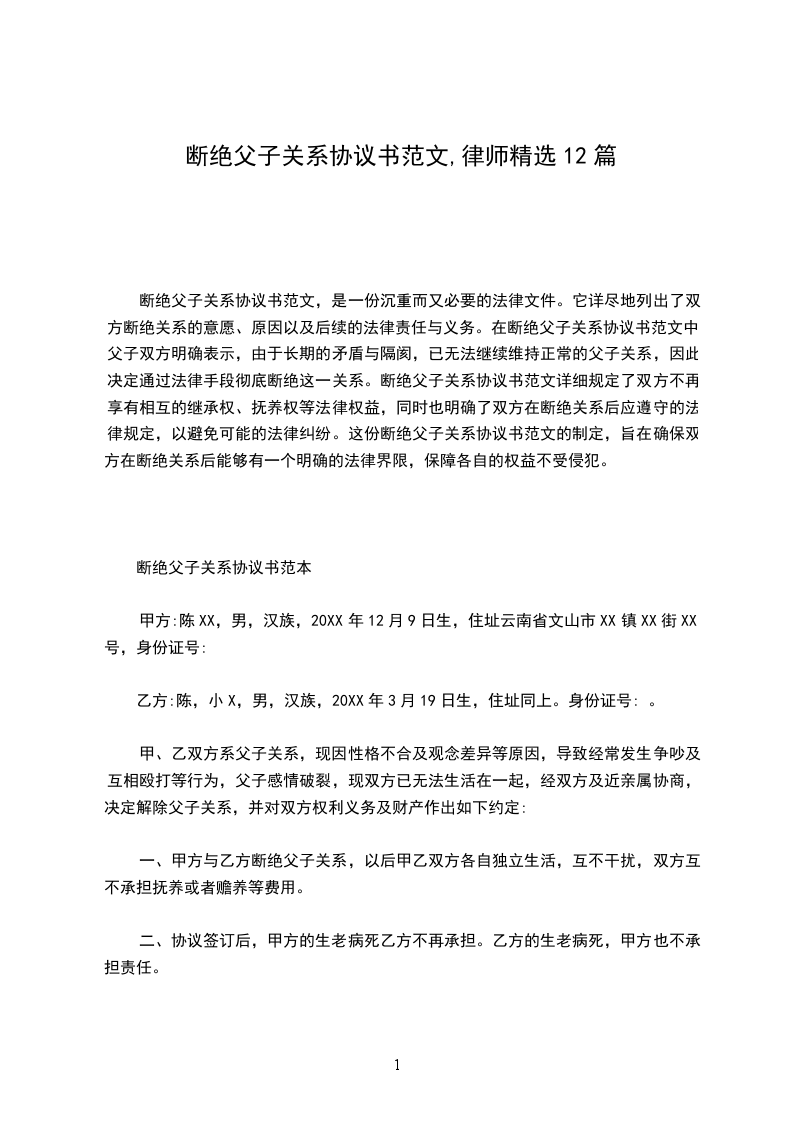鉴于甲乙双方系父子关系,现双方自愿协商,达成断绝父子关系协议如下: