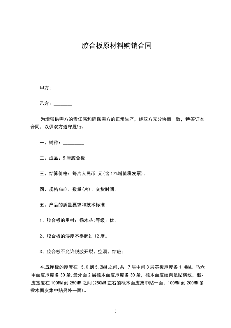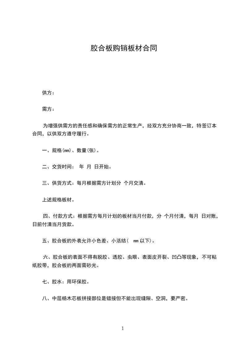十二、供方应负责需方在生产过程中所出现的第十一条质量问题(负责胶合板的退货);