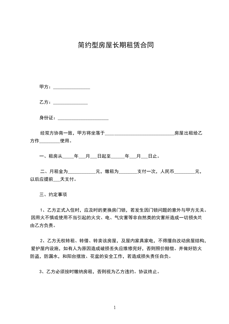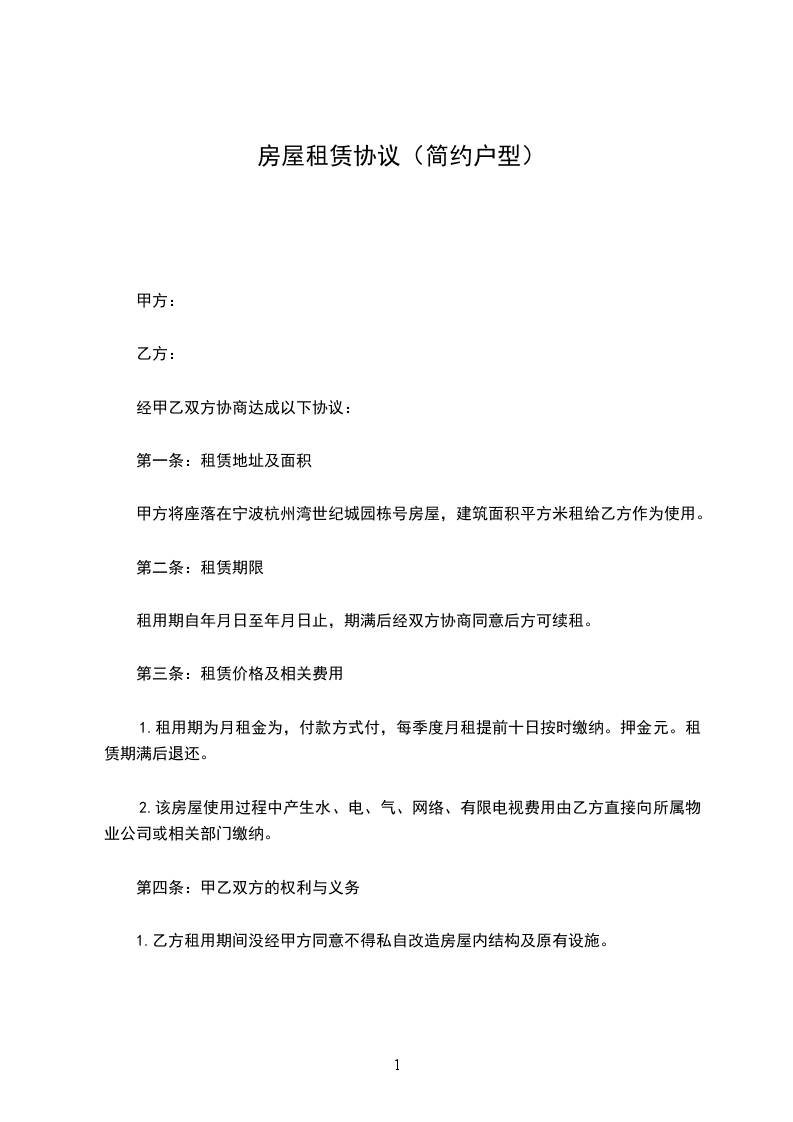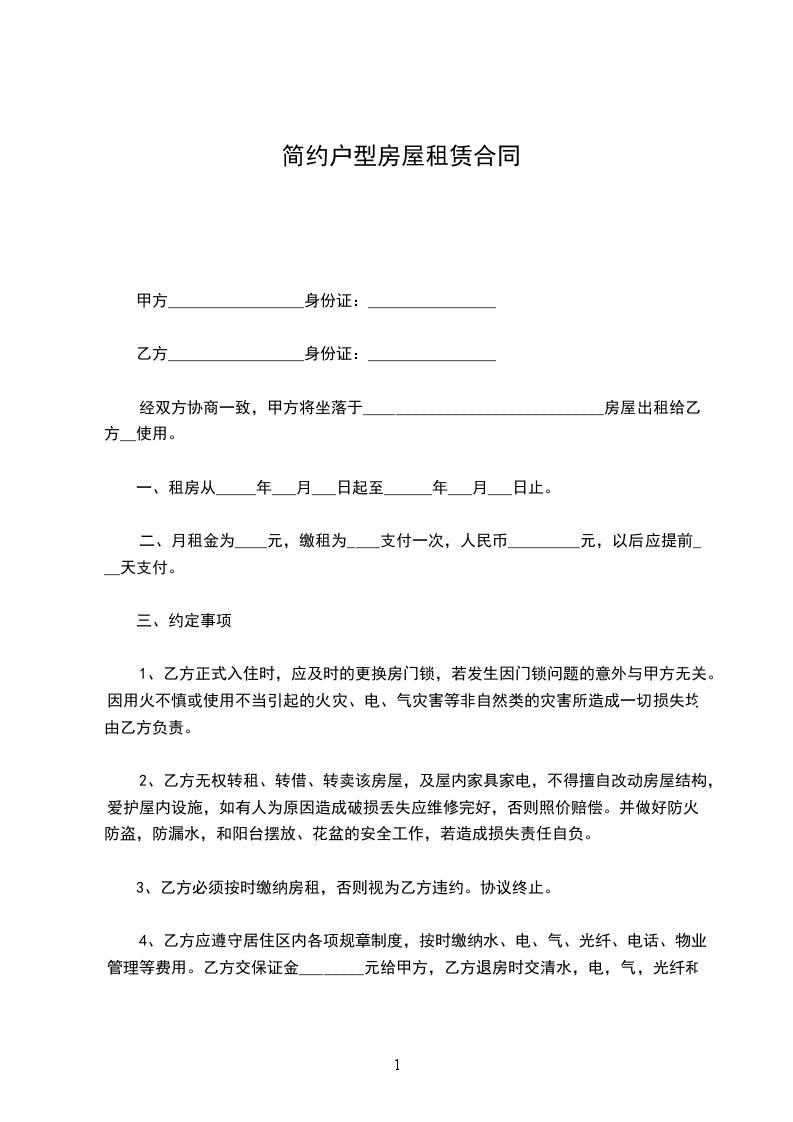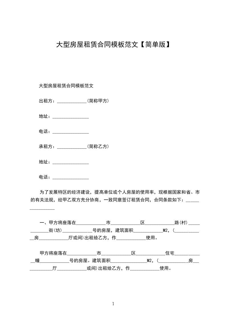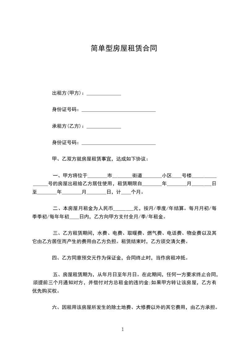 一、甲方将位于________市________街道________小区____号楼________________号的房屋出租给乙方居住使用,租赁期限自________年________月________日至________年________月________日,计____个月。