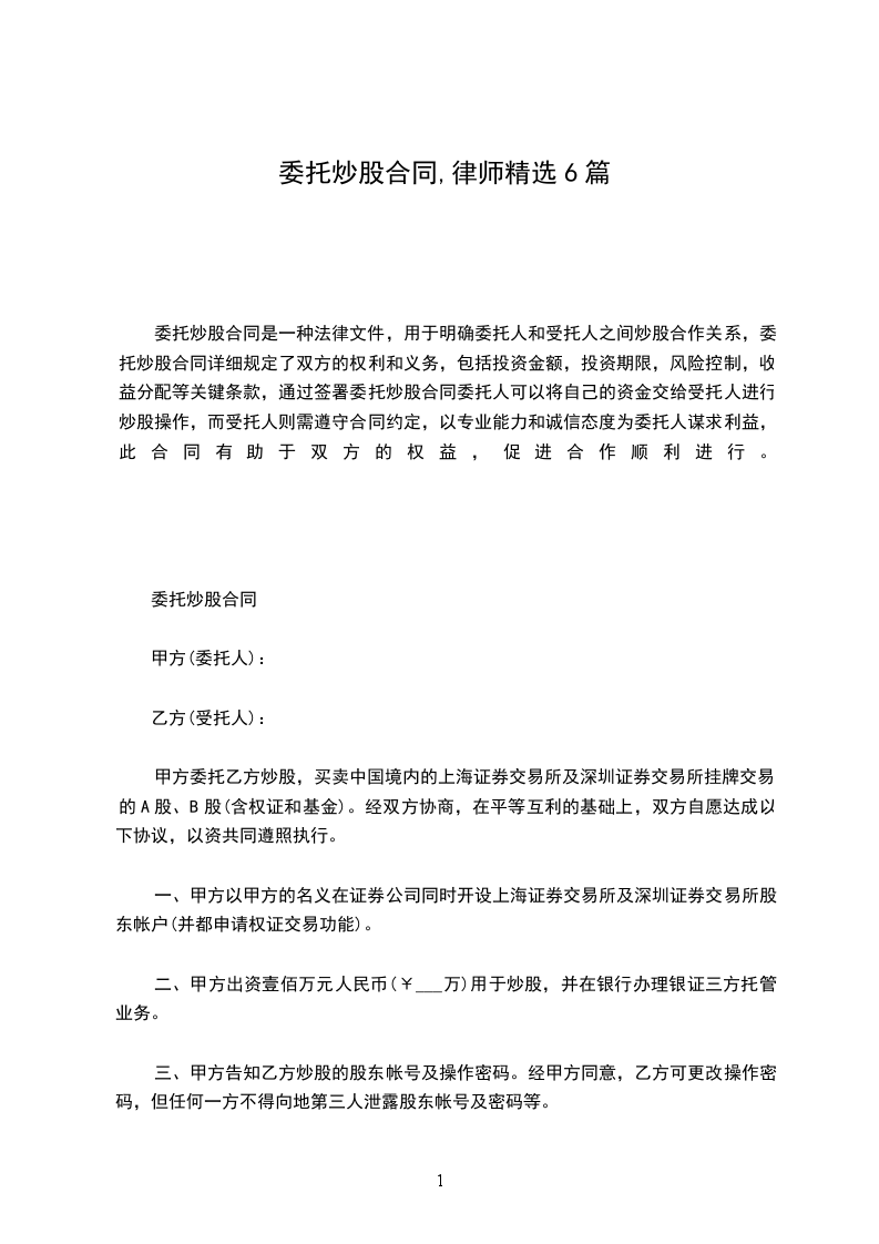 1. 甲方委托乙方在合法合规的前提下,运用甲方提供的资金进行股票投资操作。