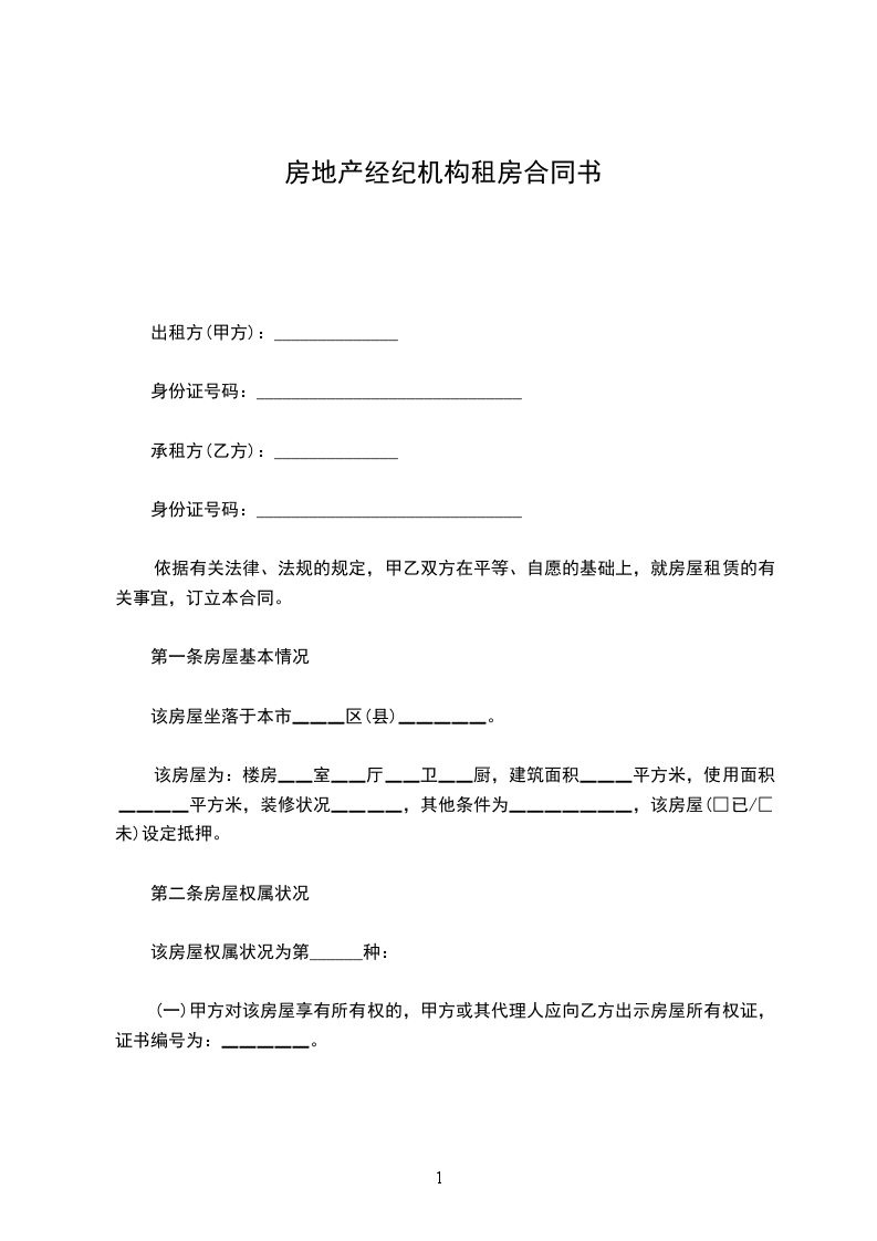 (一)甲方对该房屋享有所有权的,甲方或其代理人应向乙方出示房屋所有权证,证书编号为:▁▁▁▁▁。