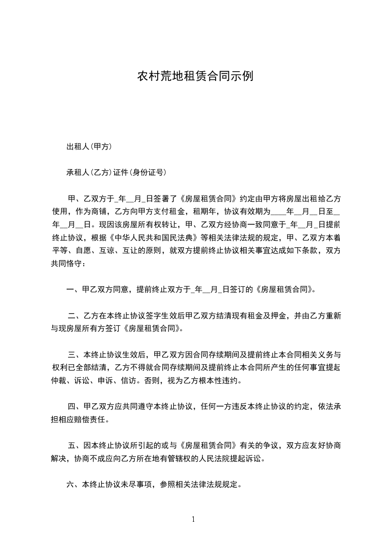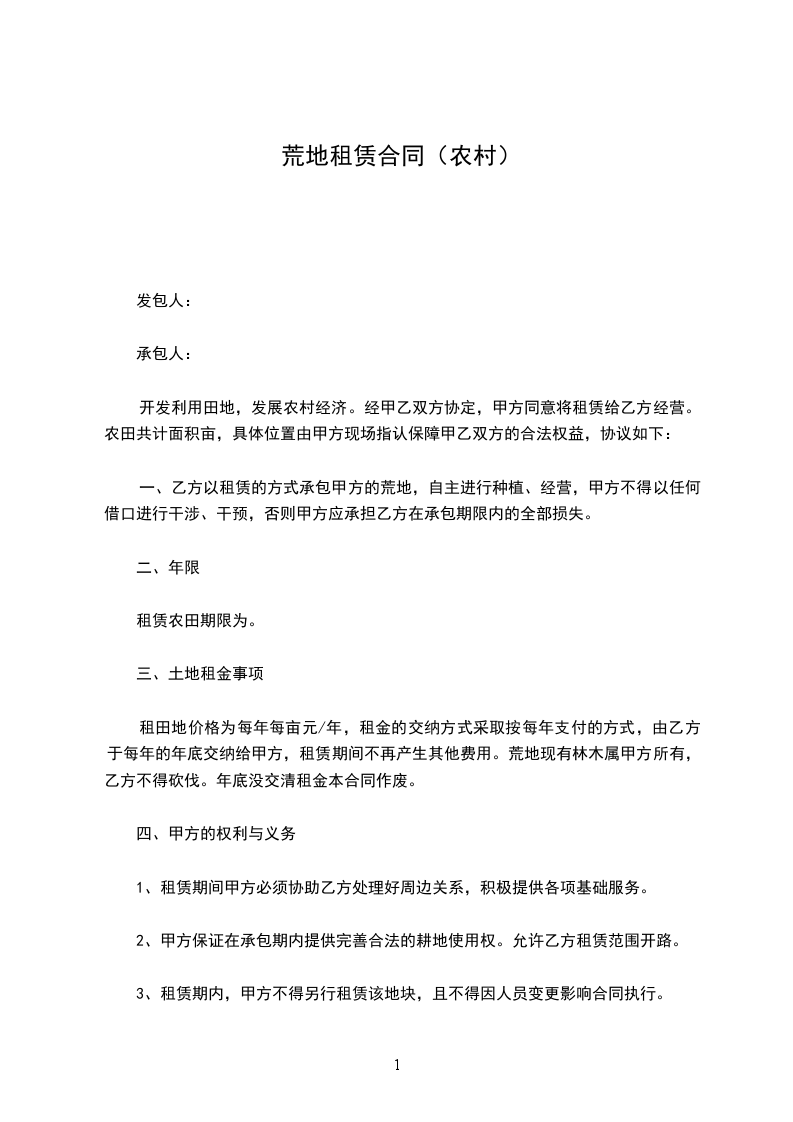一、乙方以租赁的方式承包甲方的荒地,自主进行种植、经营,甲方不得以任何借口进行干涉、干预,否则甲方应承担乙方在承包期限内的全部损失。