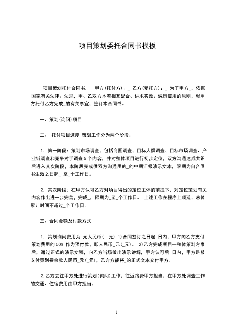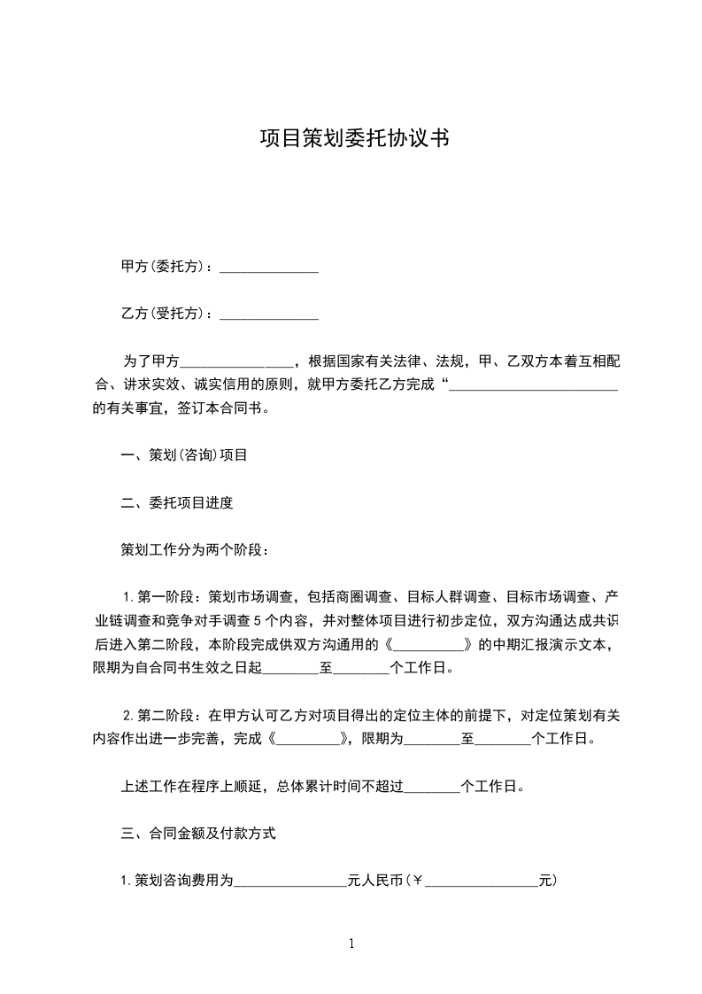 2)乙方完成项目一整体策划方案后,通过正式的演示文稿,向乙方当场做出演示讲解,甲方认可后日内,甲方足额支付策划费余款人民币________元(¥________元),乙方方能将《________________》的正式文本交付甲方。