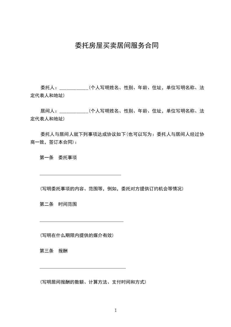 1、丙方向甲乙双方提供的中介服务内容:向甲乙双方提供订立《房屋买卖居间合同》的机会、协助成交。