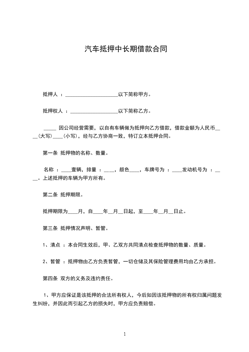 机号:抵押给甲方,抵押车辆估计价值:人民币_____元。