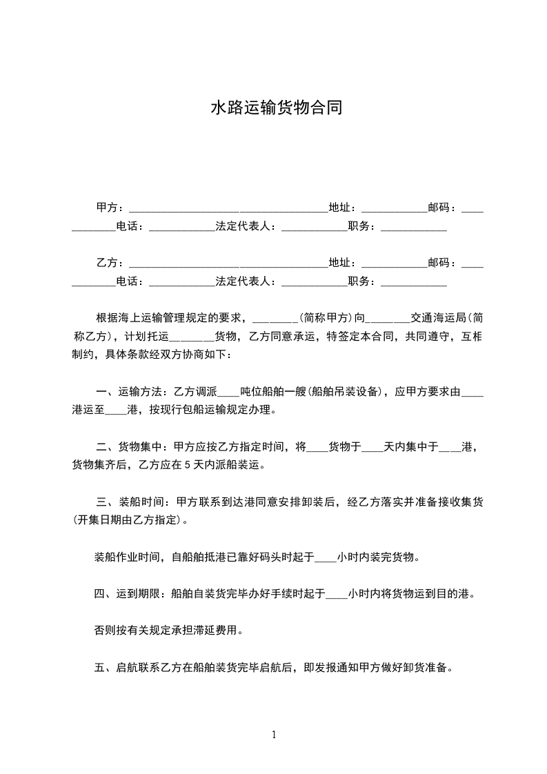 根据海上运输管理规定的要求,________(简称甲方)向________交通海运局(简称乙方),计划托运________货物,乙方同意承运,特签定本合同,共同遵守,互相制约,具体条款经双方协商如下: