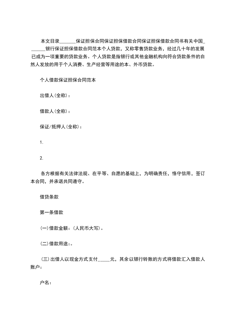 本文目录_______保证担保合同保证担保借款合同保证担保借款合同书有关中国_______银行保证担保借款合同范本个人贷款,又称零售贷款业务,经过几十年的发展,已成为一项重要的贷款业务。个人贷款是指银行或其他金融机构向符合贷款条件的自然人发放的用于个人消费、生产经营等用途的本、外币贷款。