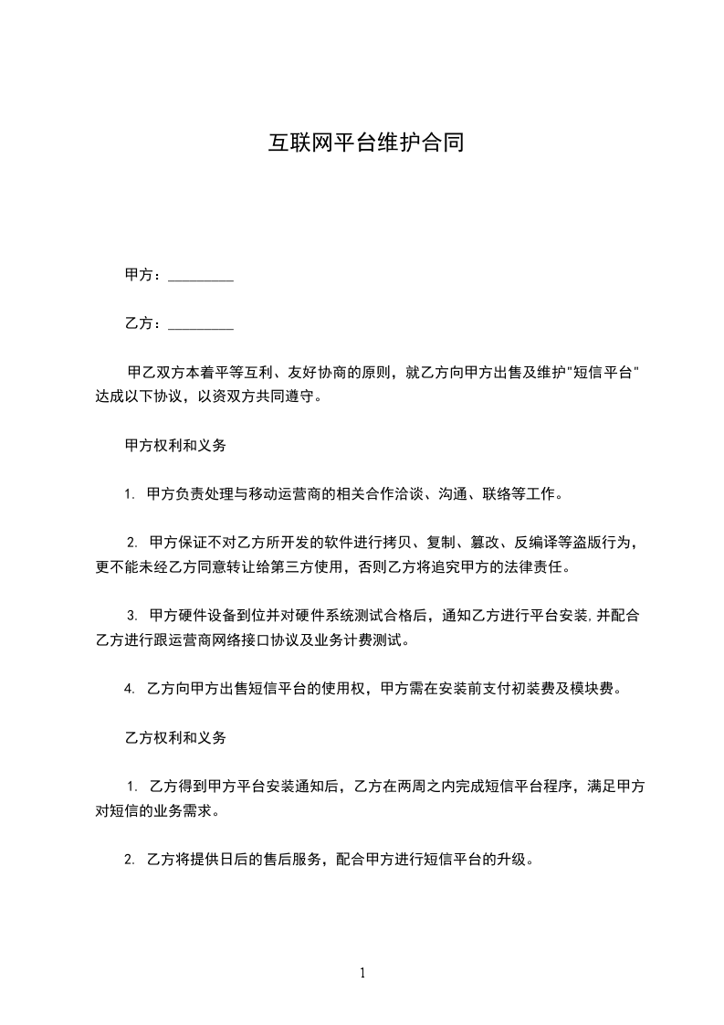鉴于甲方拥有并运营[互联网平台名称](以下简称“平台”),乙方希望使用平台提供的相关服务,经双方友好协商,依据《中华人民共和国民法典》及其他相关法律法规的规定,就乙方使用甲方平台服务事宜达成如下协议: