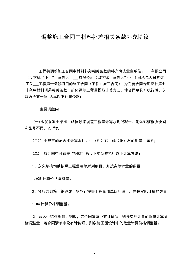 1. 自______年____月____日起,原租赁合同中约定的租金标准由每月人民币______元调整为每月人民币______元。
