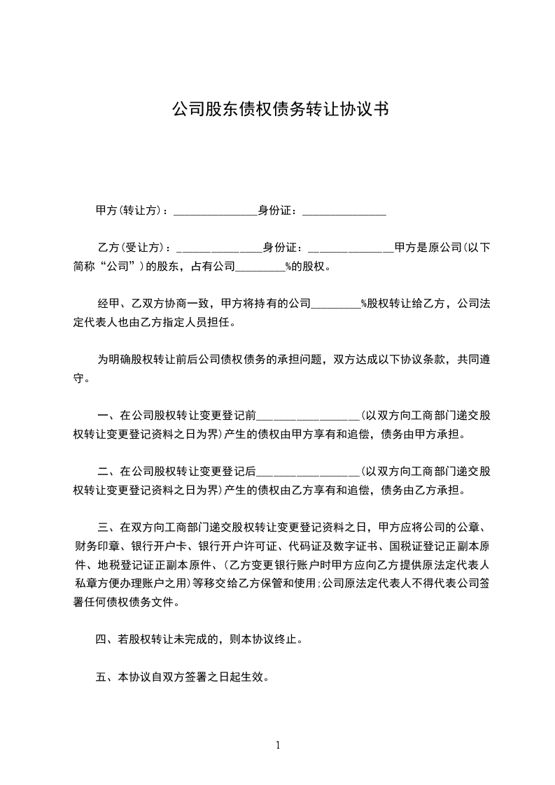 1、因甲方转让公司遗留的一切债权、债务由甲方自行承担,与乙方无关。
