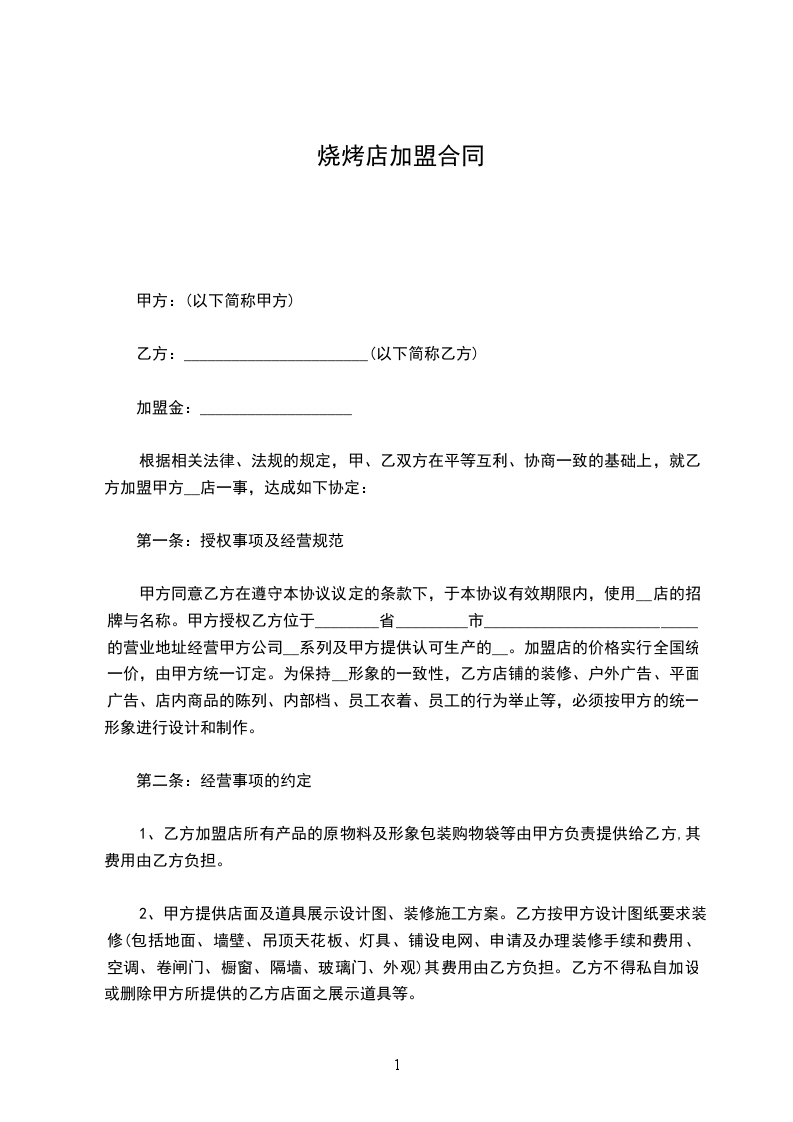 篇1烧烤店劳动合同