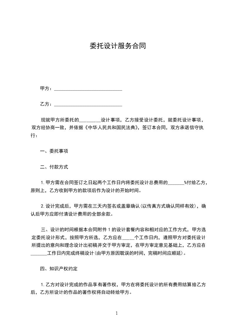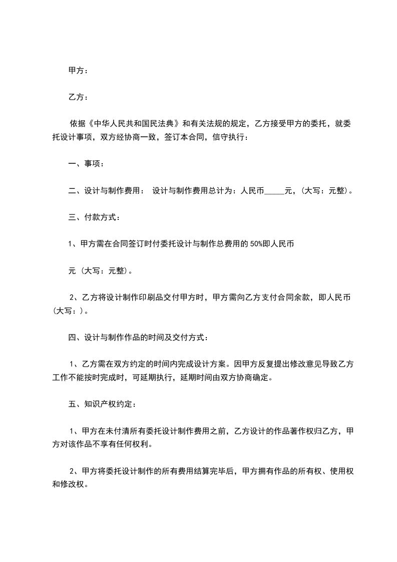 现就甲方所委托的_________设计事项,乙方接受设计委托,就委托设计事项,双方经协商一致,并依据《中华人民共和国民法典》,签订本合同,双方承诺信守执行: