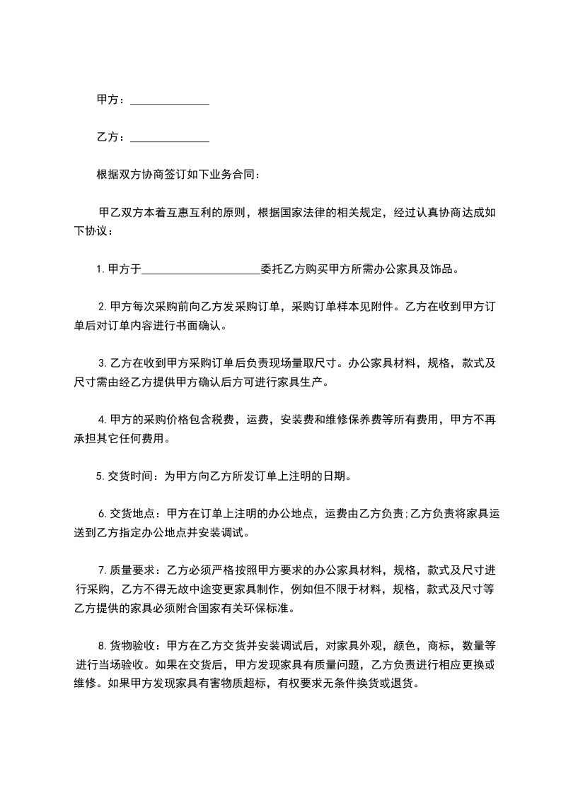 - 乙方所提供的家具应符合国家相关质量标准及行业规范,确保使用安全、环保。