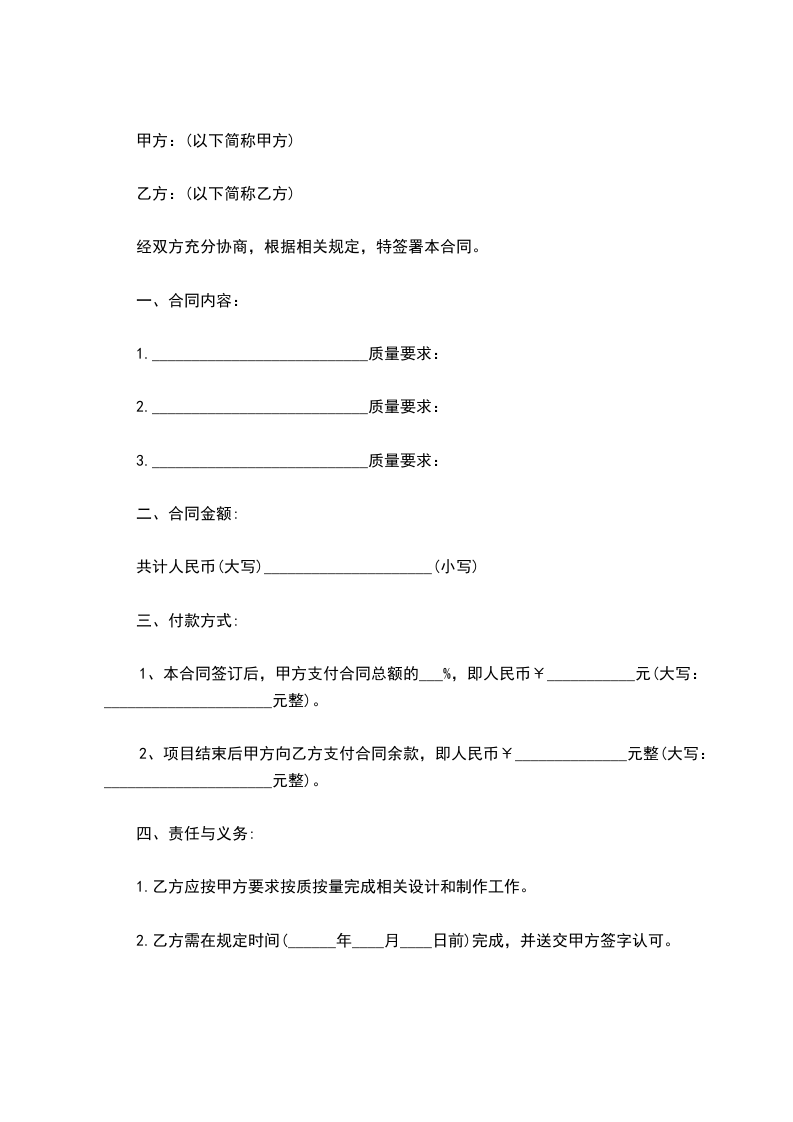 1.乙方应按甲方要求按质按量完成相关设计和制作工作。