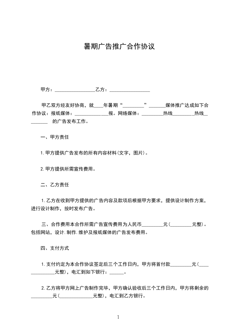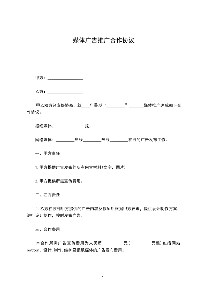 甲乙双方经友好协商,就____年暑期“_________”_______媒体推广达成如下合作协议: