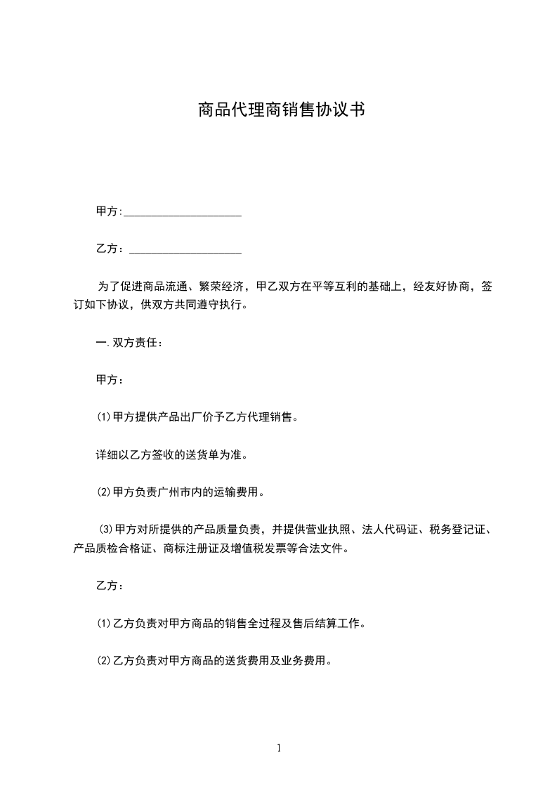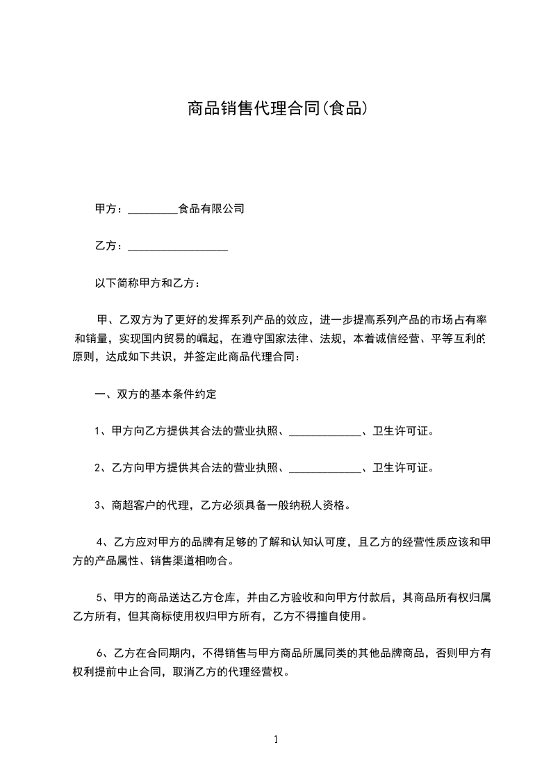 1、甲方许可乙方在_______________地区销售协议商品,乙方享有销售代理权。