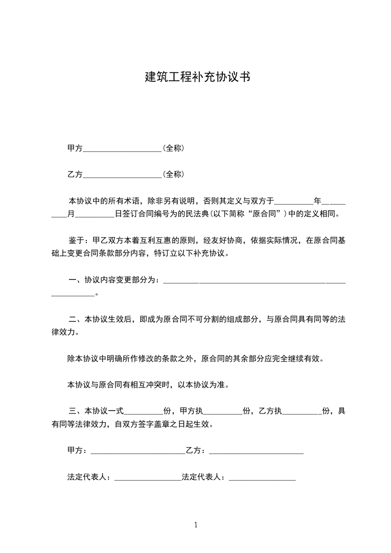 - 本补充协议约定工作内容的总工期为自本协议签订之日起______天。乙方应严格按照此工期要求组织施工,确保按时完成任务。