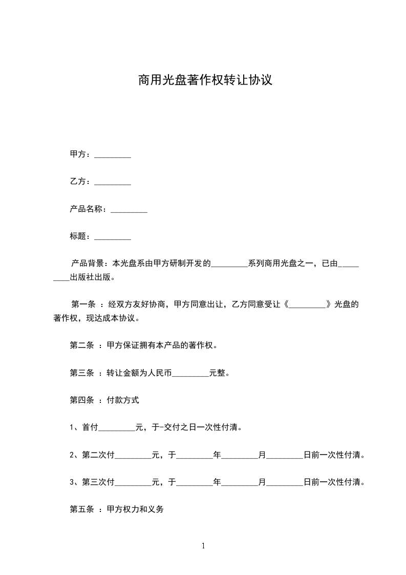 第一条 :经双方友好协商,甲方同意出让,乙方同意受让《_________》光盘的著作权,现达成本协议。