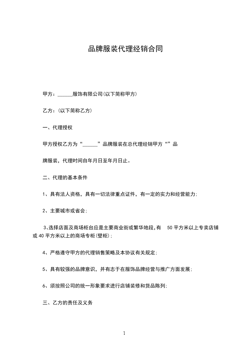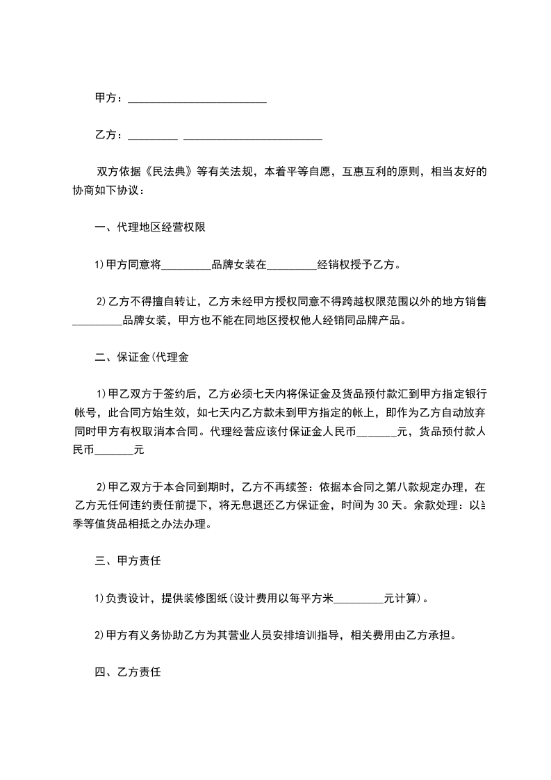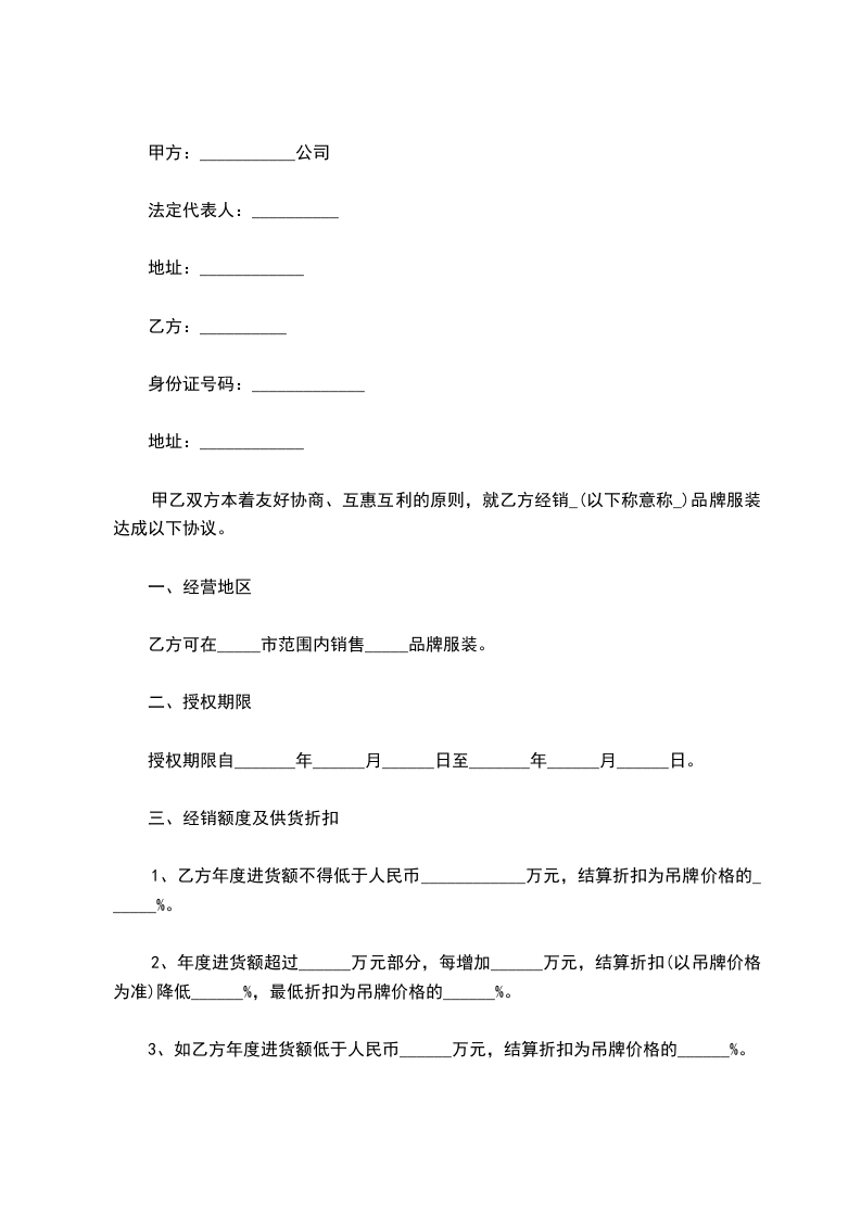 牌服装,代理时间自_____年_____月_____日至_____年_____月_____日止。