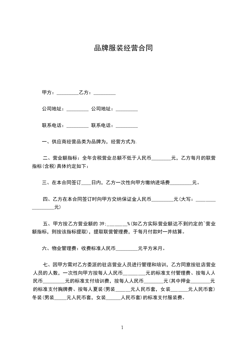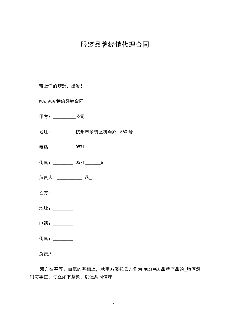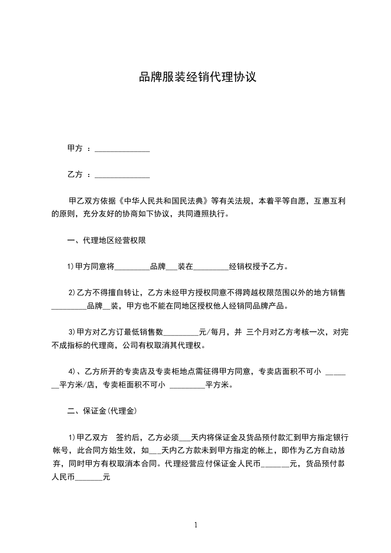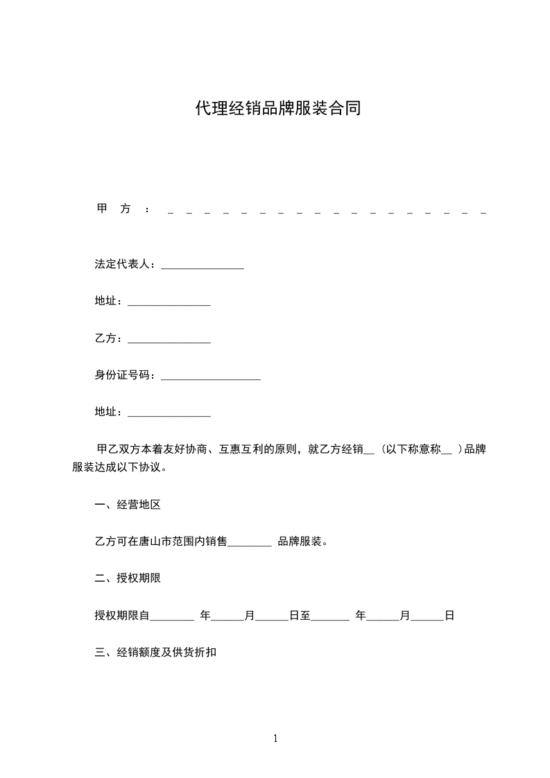 牌服装,代理时间自_____年_____月_____日至_____年_____月_____日止。