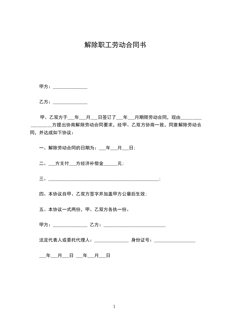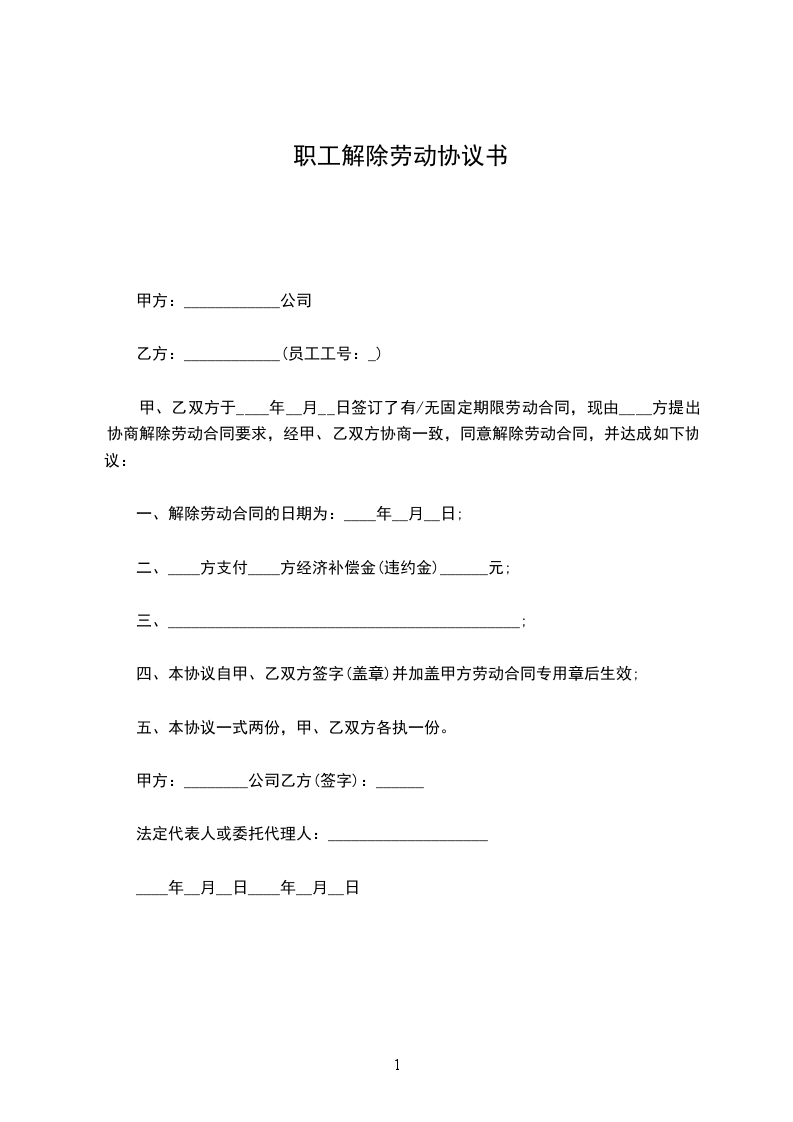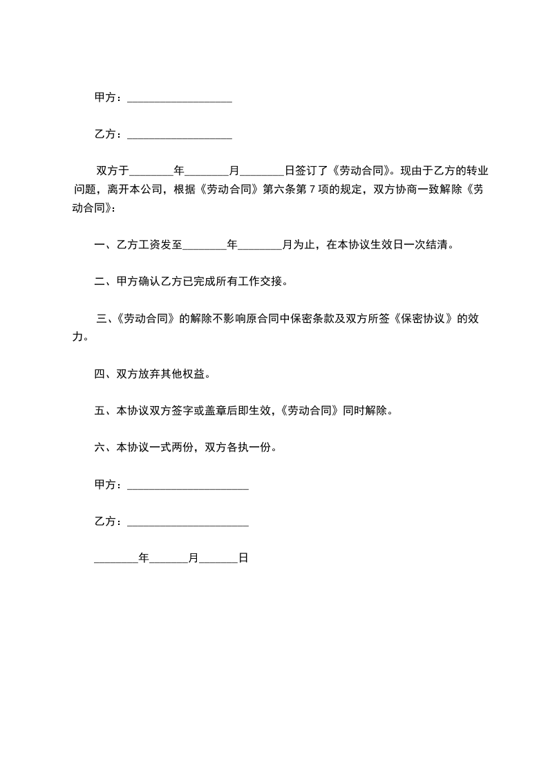 一、解除劳动合同的日期为:____年__月__日;