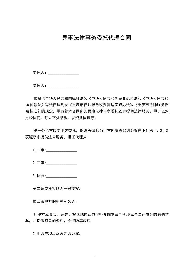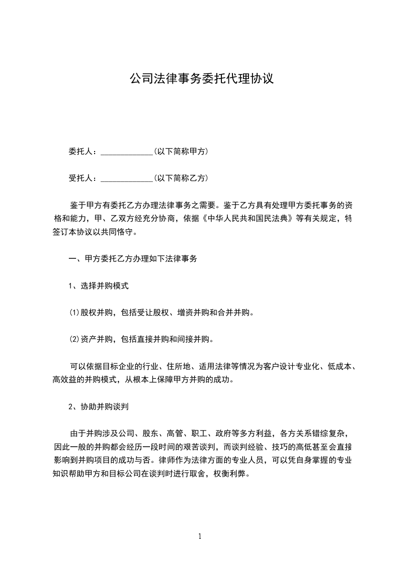 委托代理法律事务合同