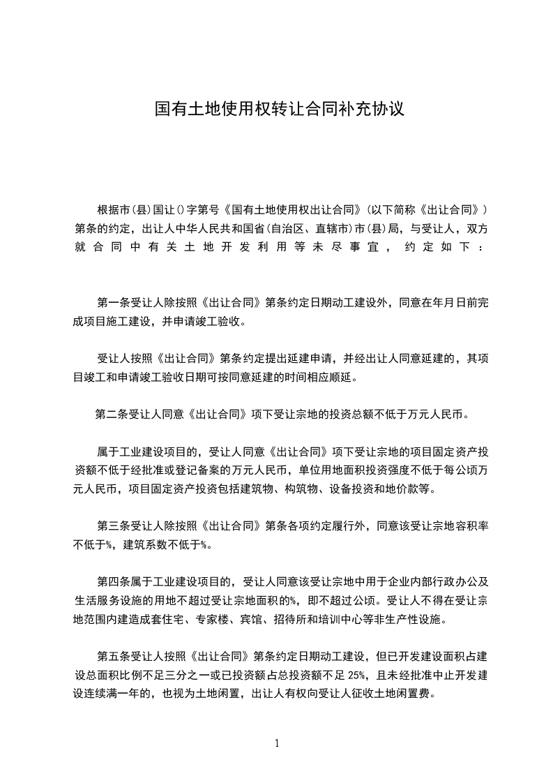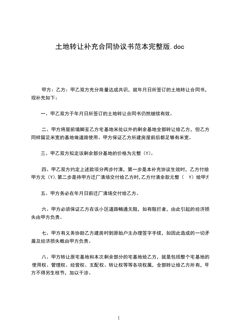 鉴于甲乙双方于[土地转让合同签订日期]签订了《土地转让合同》(以下简称“原合同”),现经双方友好协商,就原合同相关事宜达成如下补充协议:
