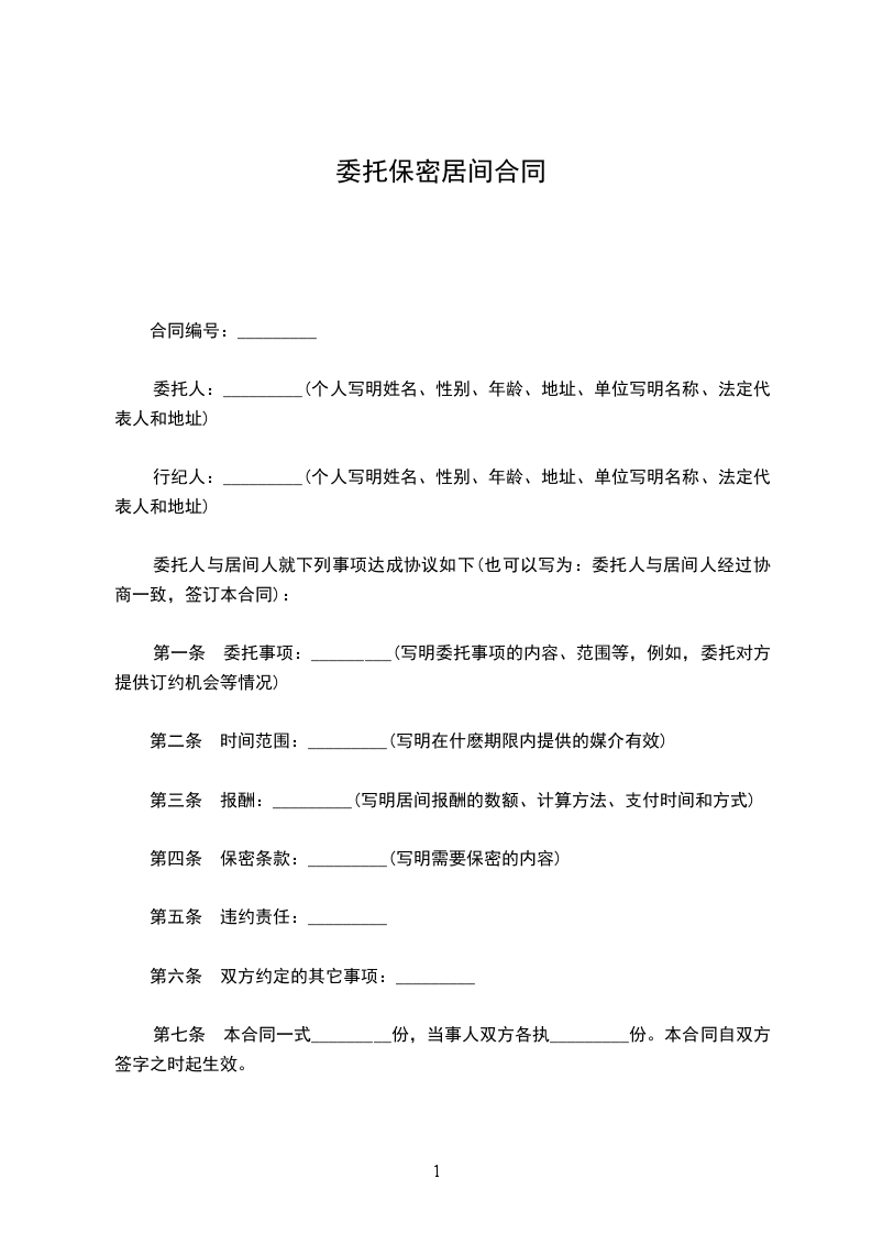 第一条 委托事项:_________(写明委托事项的内容、范围等,例如,委托对方提供订约机会等情况)