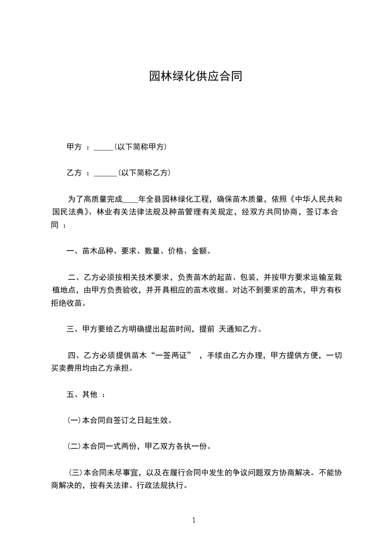 篇1园林绿化补充协议