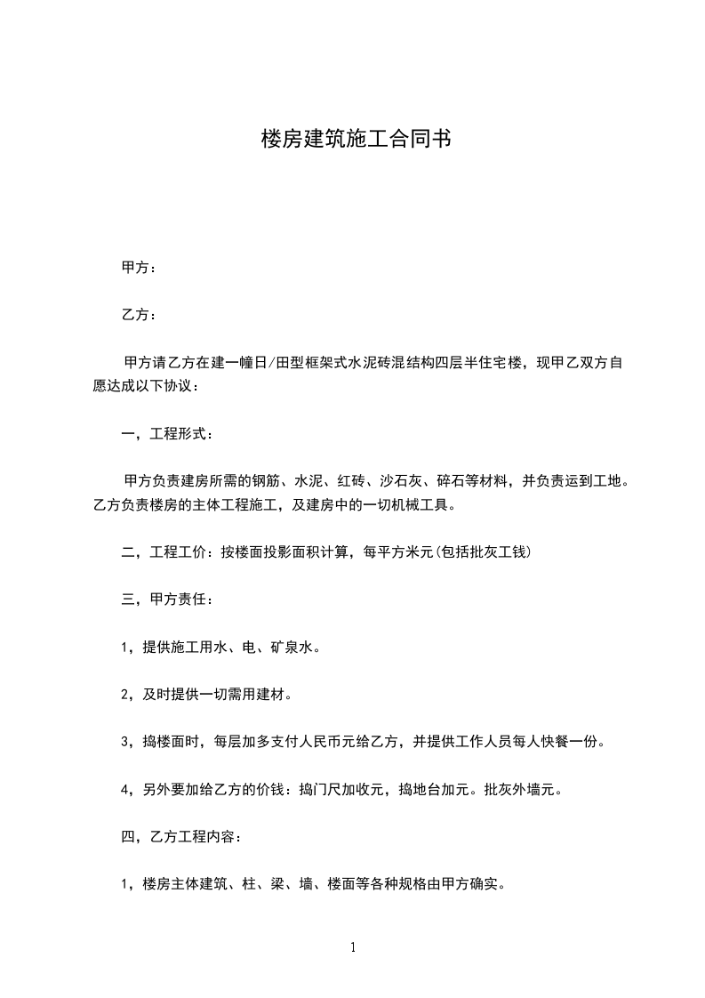 甲方请乙方在建一幢日/田型框架式水泥砖混结构四层半住宅楼,现甲乙双方自愿达成以下协议: