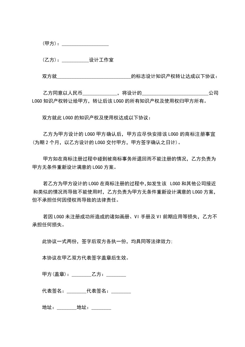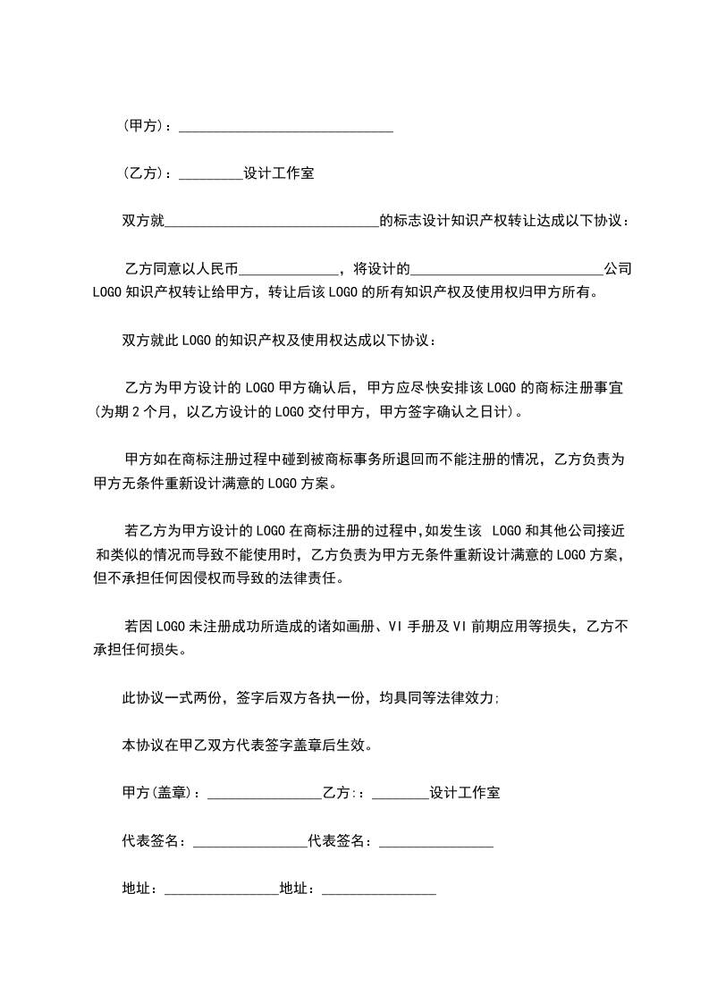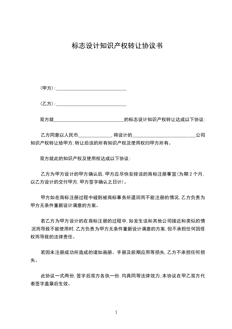 双方就______________________________的标志设计知识产权转让达成以下协议: