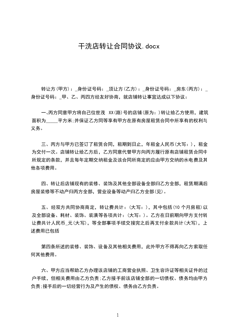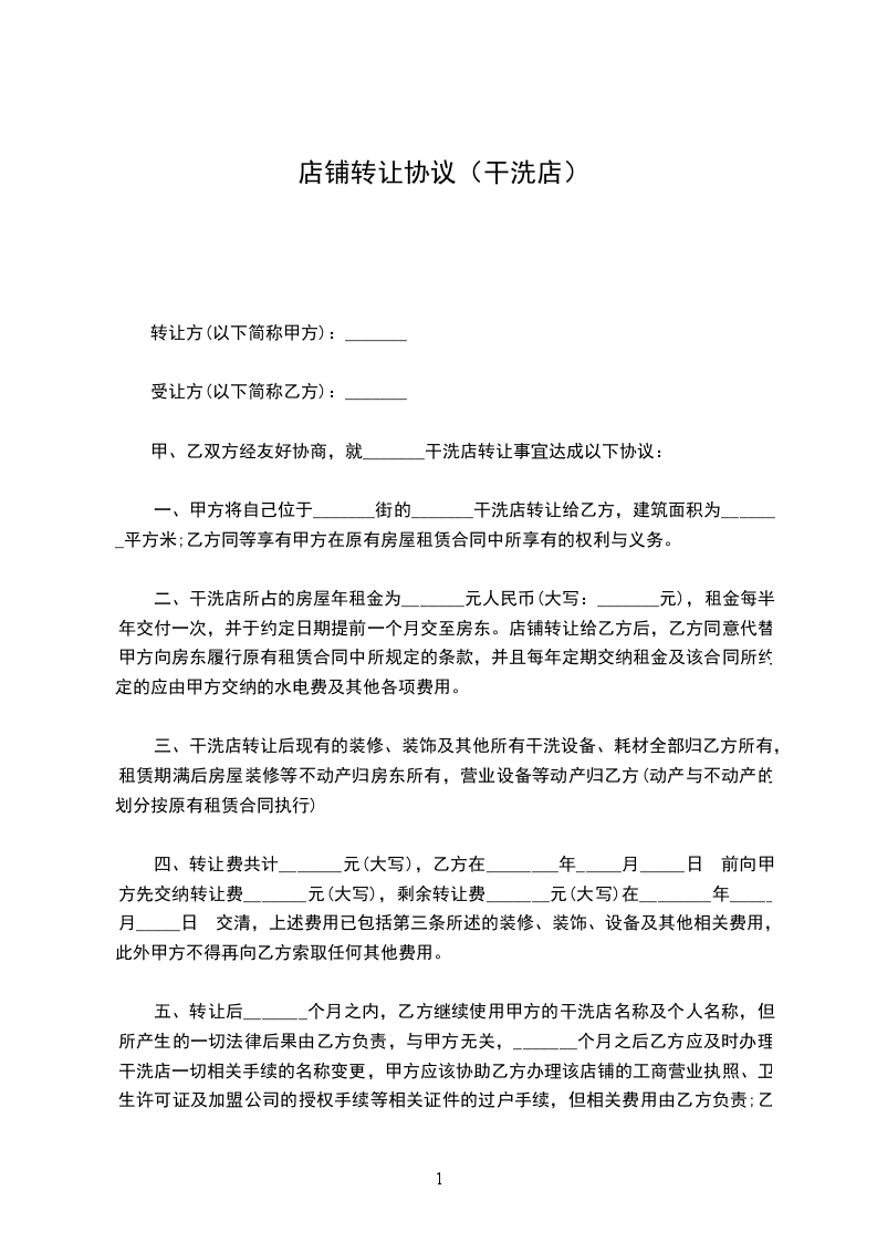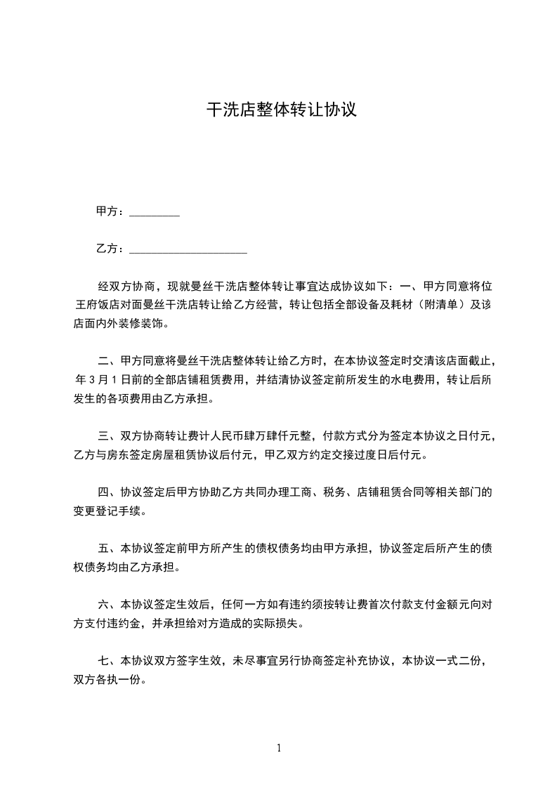 甲、乙双方经友好协商,就干洗店转让事宜达成以下协议: