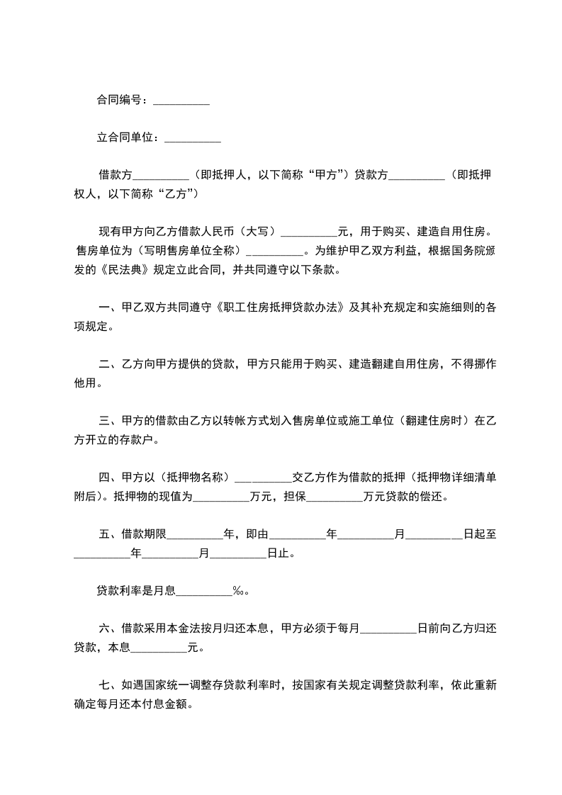 鉴于乙方因[借款用途]需要资金,向甲方申请抵押贷款,经双方友好协商,达成如下协议: