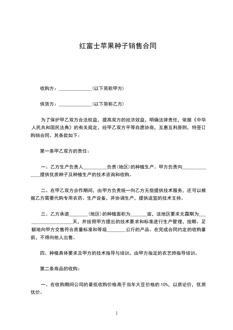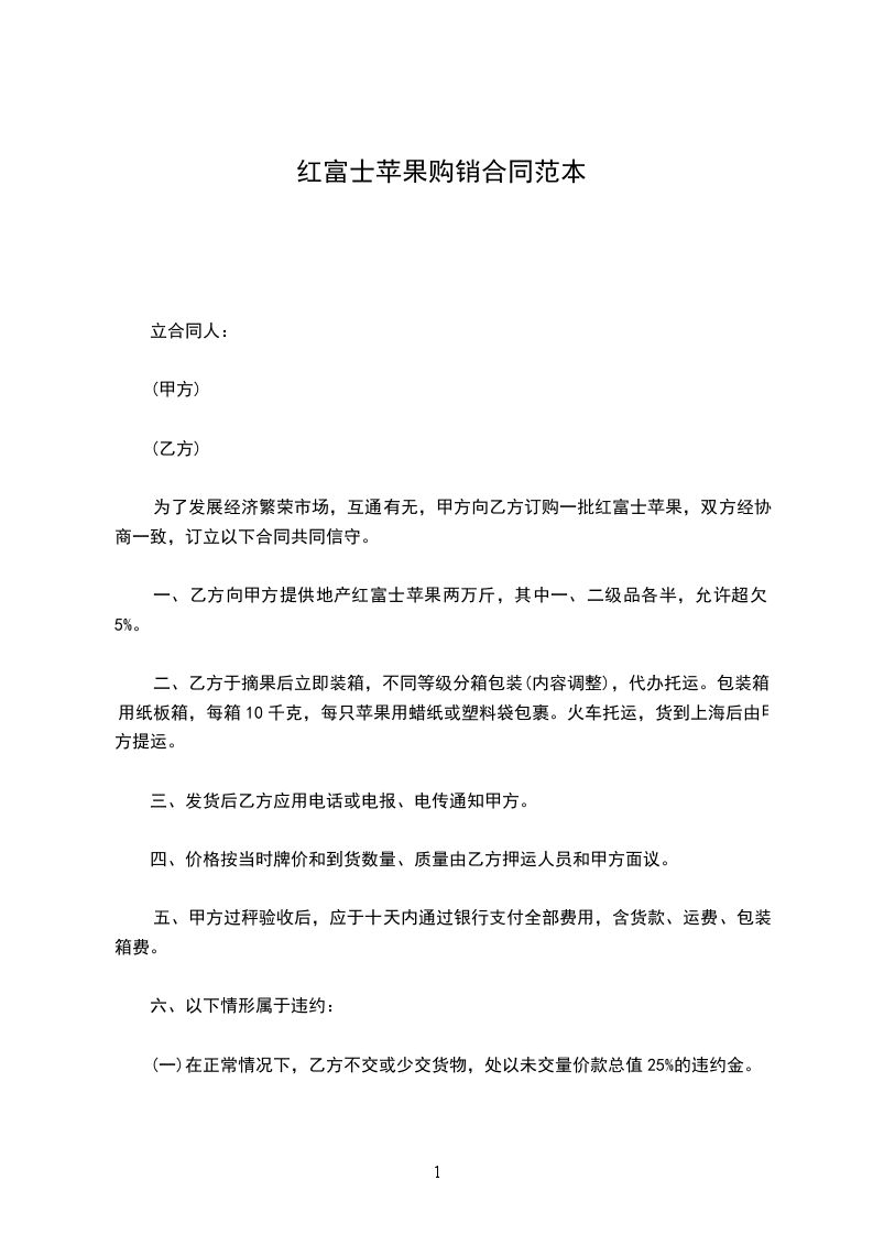 为了发展经济繁荣市场,互通有无,甲方向乙方订购一批红富士苹果,双方经协商一致,订立以下合同共同信守。