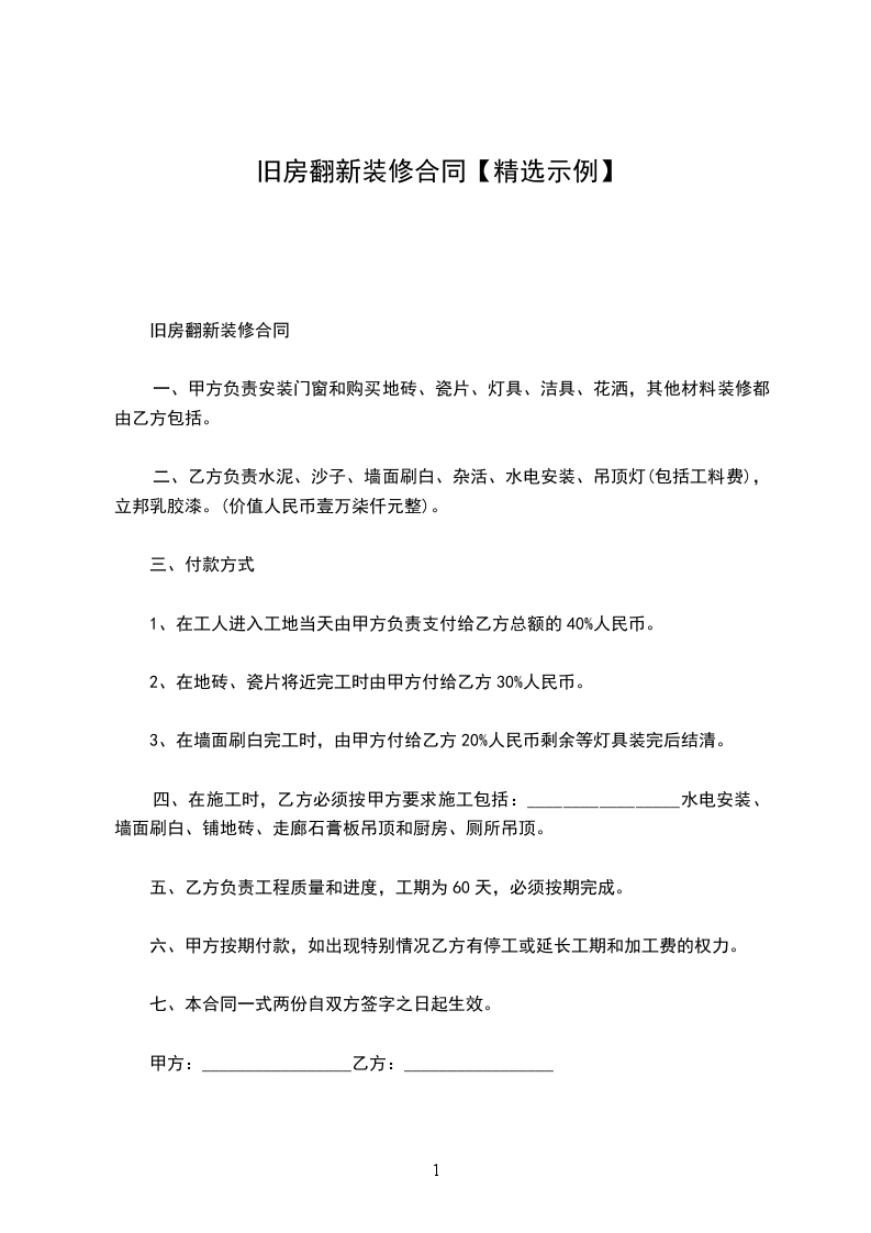 篇1旧房子翻新合同