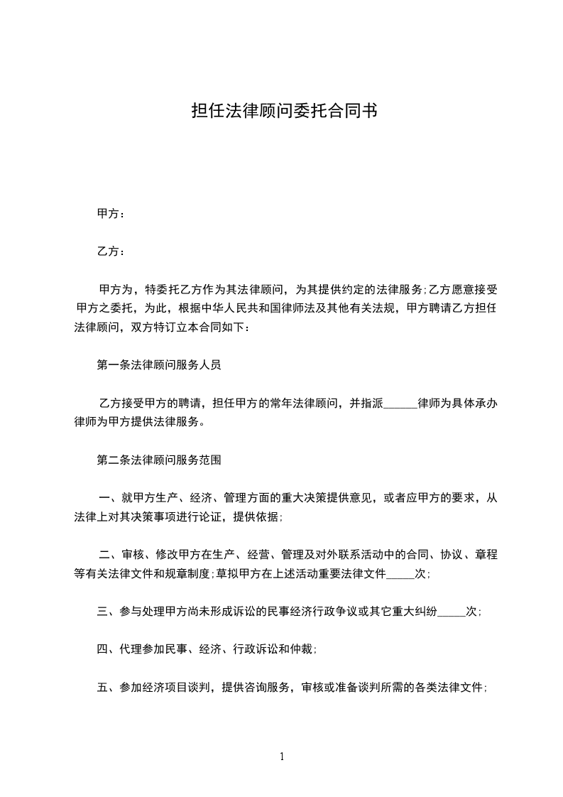 第二条法律顾问服务范围