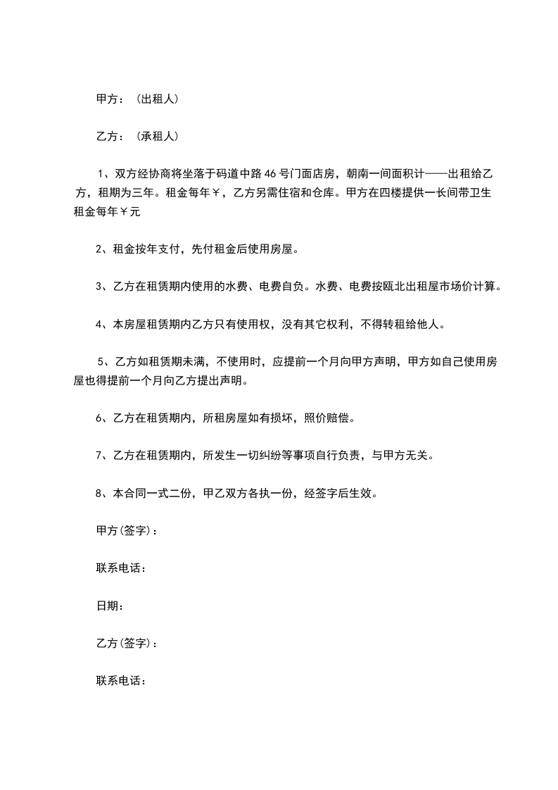 3、在租赁期内,因租赁门面所产生的水、电、卫生费等一切费用由乙方自行承担。