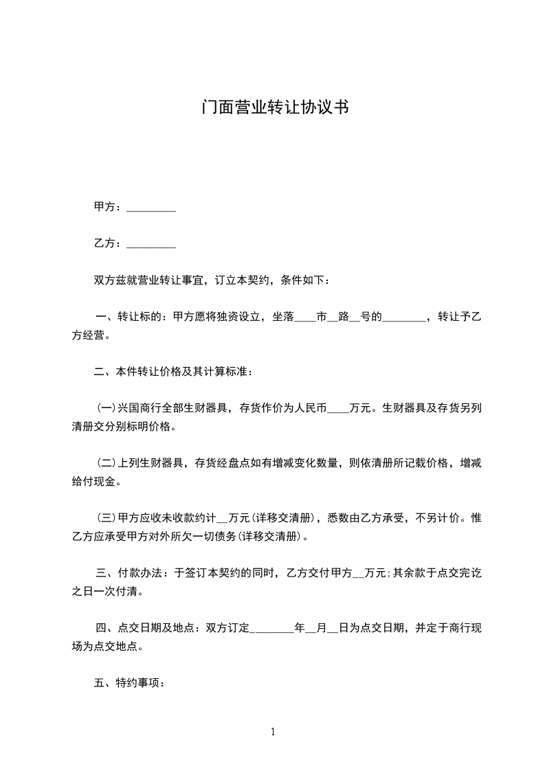 门面交接时,甲方应腾空非《转让财物交接清单》范围内的一切设施、物品和货物,保持门面已有装修、装饰、设施、设备、门窗、墙面、地面和天花板面的完好和完整,以便于使用。