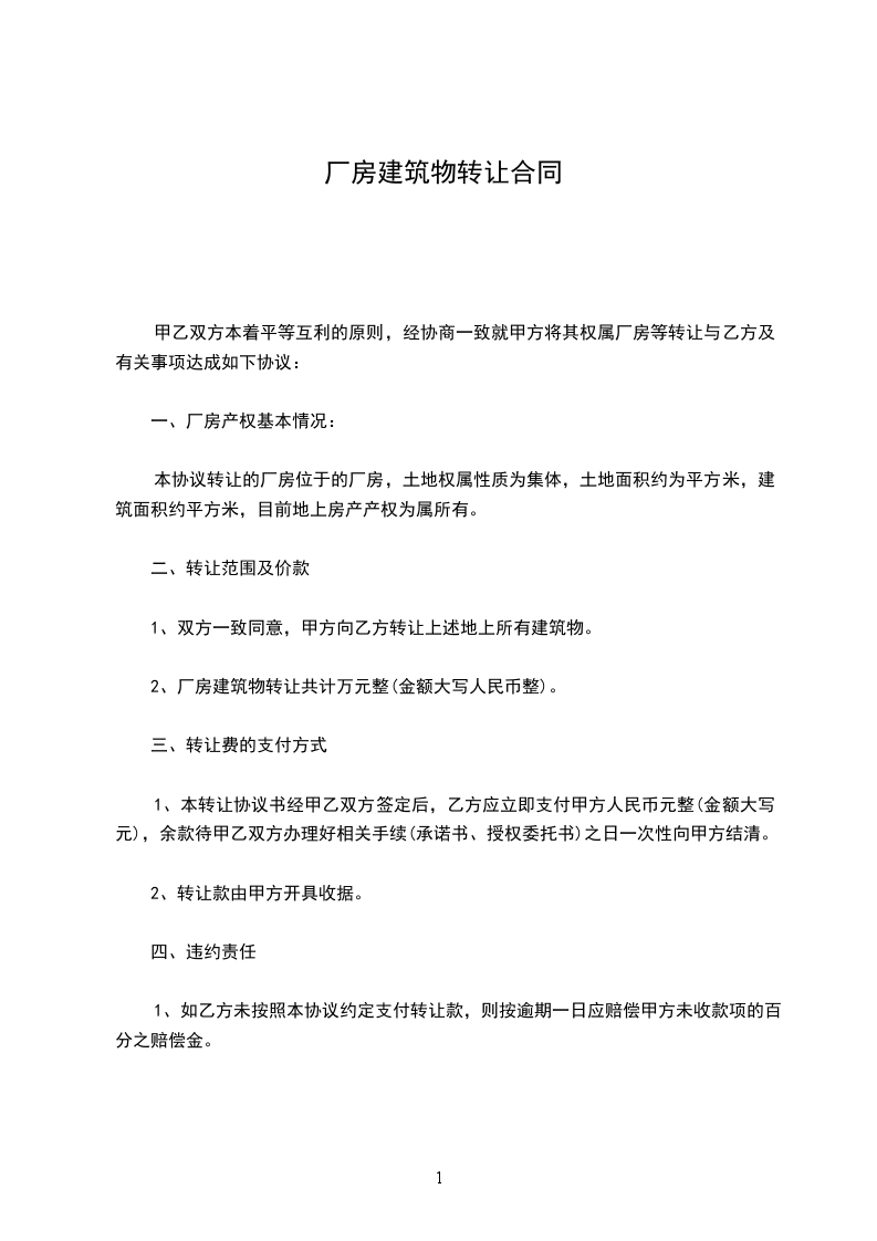 2、厂房建筑物转让共计万元整(金额大写人民币整)。