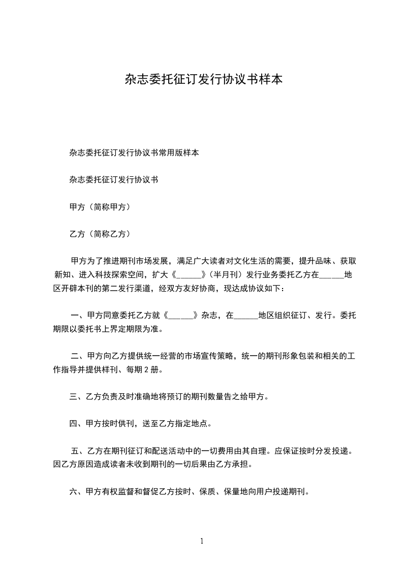 1. 甲方订阅乙方出版的上述杂志,订阅数量为____份。