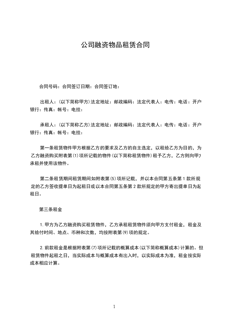 1.甲方为乙方融资购买租赁物件,乙方承租租赁物件须向甲方支付租金,租金及其给付时间、地点、币种和次数,均按附表第(9)项的规定。