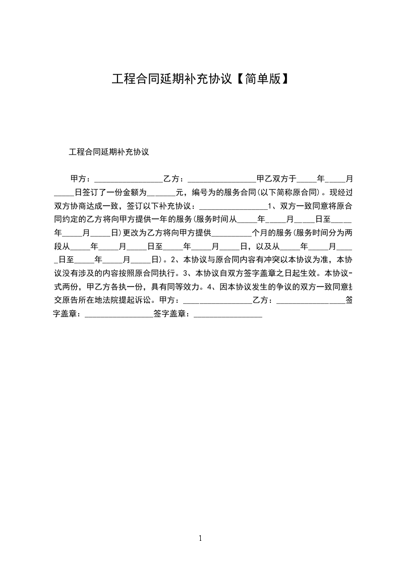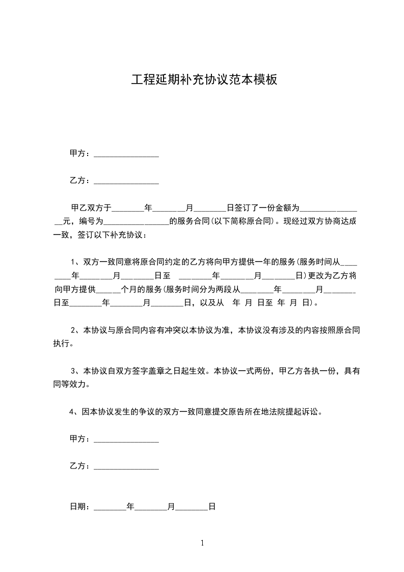 1. 本工程原计划竣工日期为[原竣工日期],现双方同意将工程竣工日期延期至[新竣工日期]。