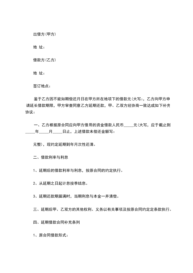 2. 延期期限:本工程原计划竣工日期为[原计划竣工日期],现经双方协商一致,同意将竣工日期延期至[新的竣工日期],共计延期[延期天数]天。