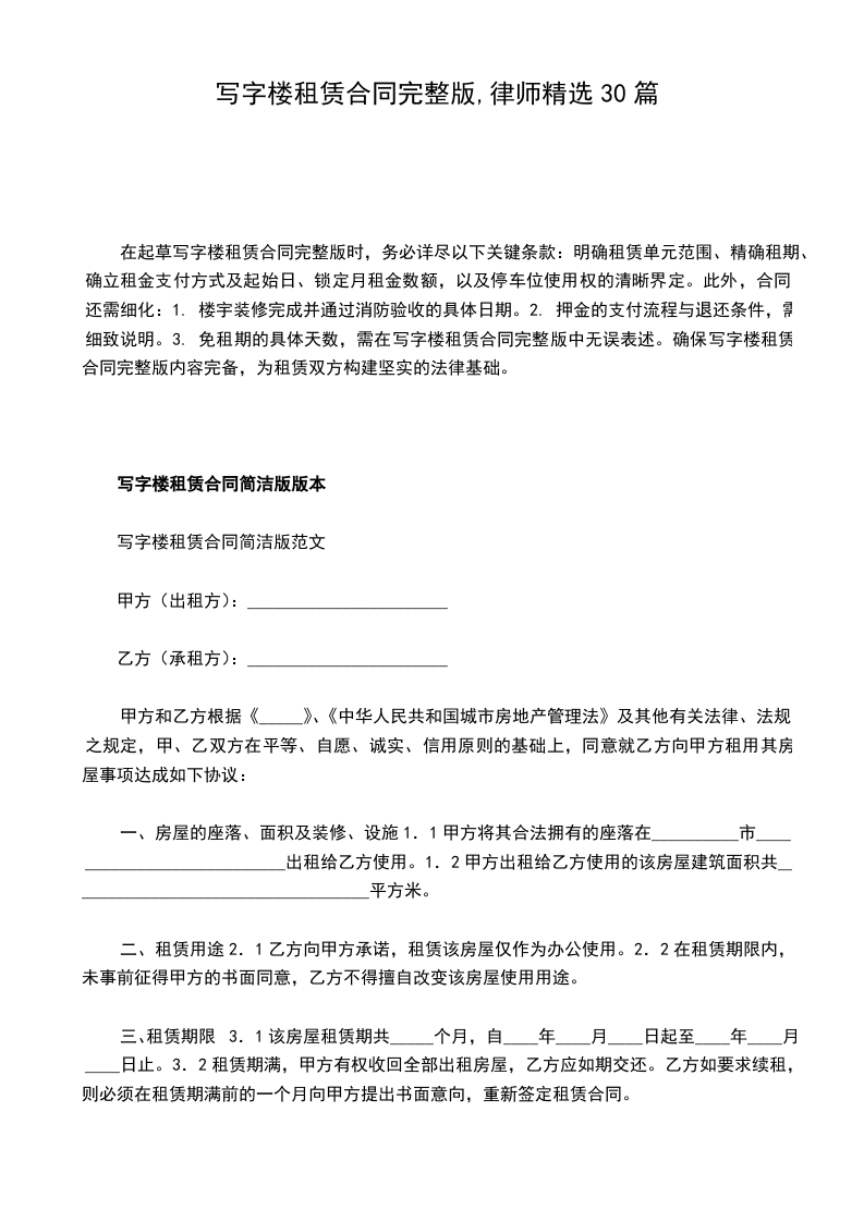 写字楼租赁合同完整版是一份全面规范写字楼租赁事宜的重要文件。它涵盖租赁双方详细信息、租赁写字楼具体情况、租金及支付方式、租赁期限、双方权利义务、违约责任等关键内容,能为租赁交易提供清晰准则,保障双方合法权益。