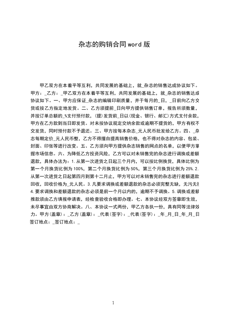 1. 乙方应按照甲方订购的数量及期限,按时、足额向甲方交付杂志。