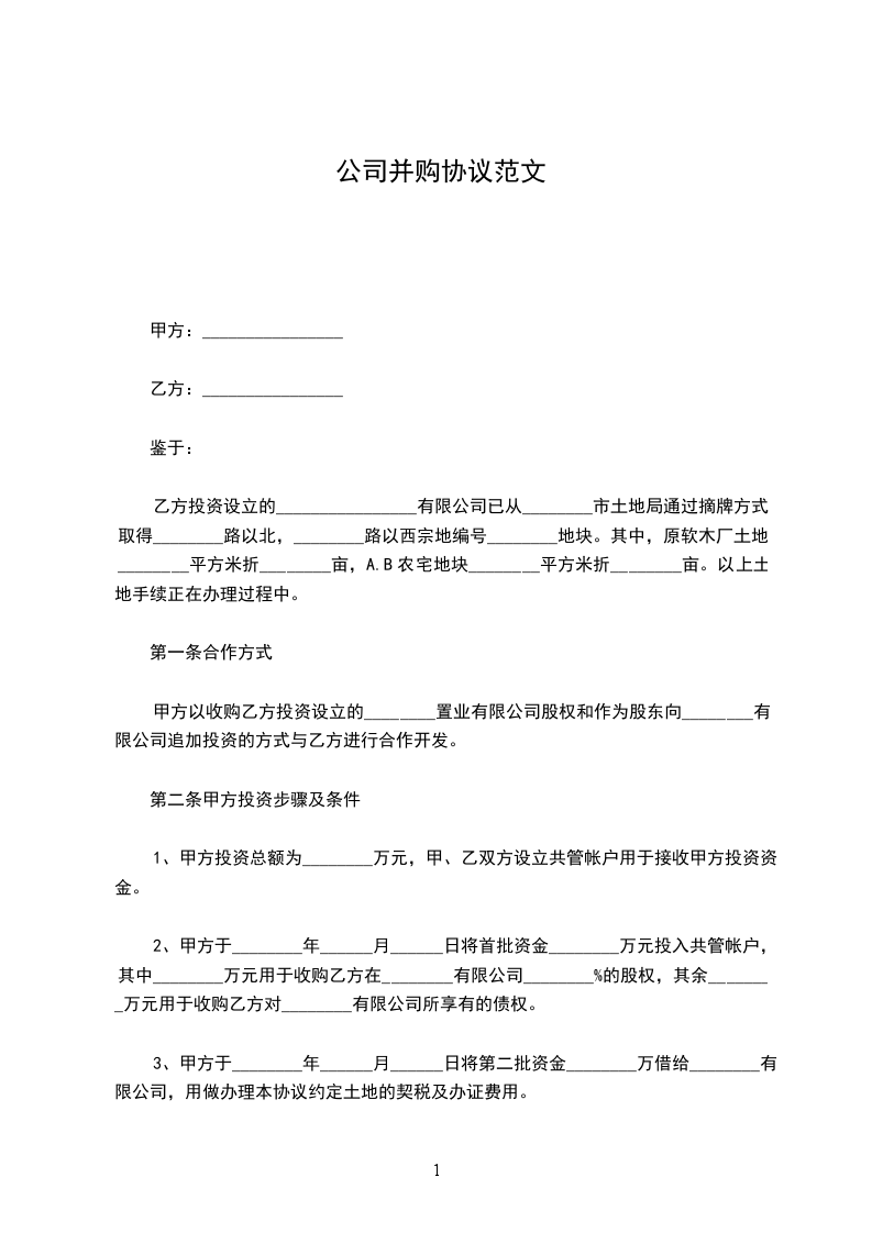 2、甲方于_________年___________月___________日将首批资金_________万元投入共管账户,其中___________万元用于收购________,其余___________万元用于收购_____________。