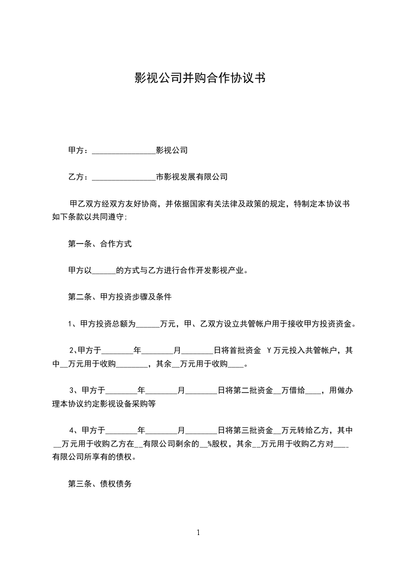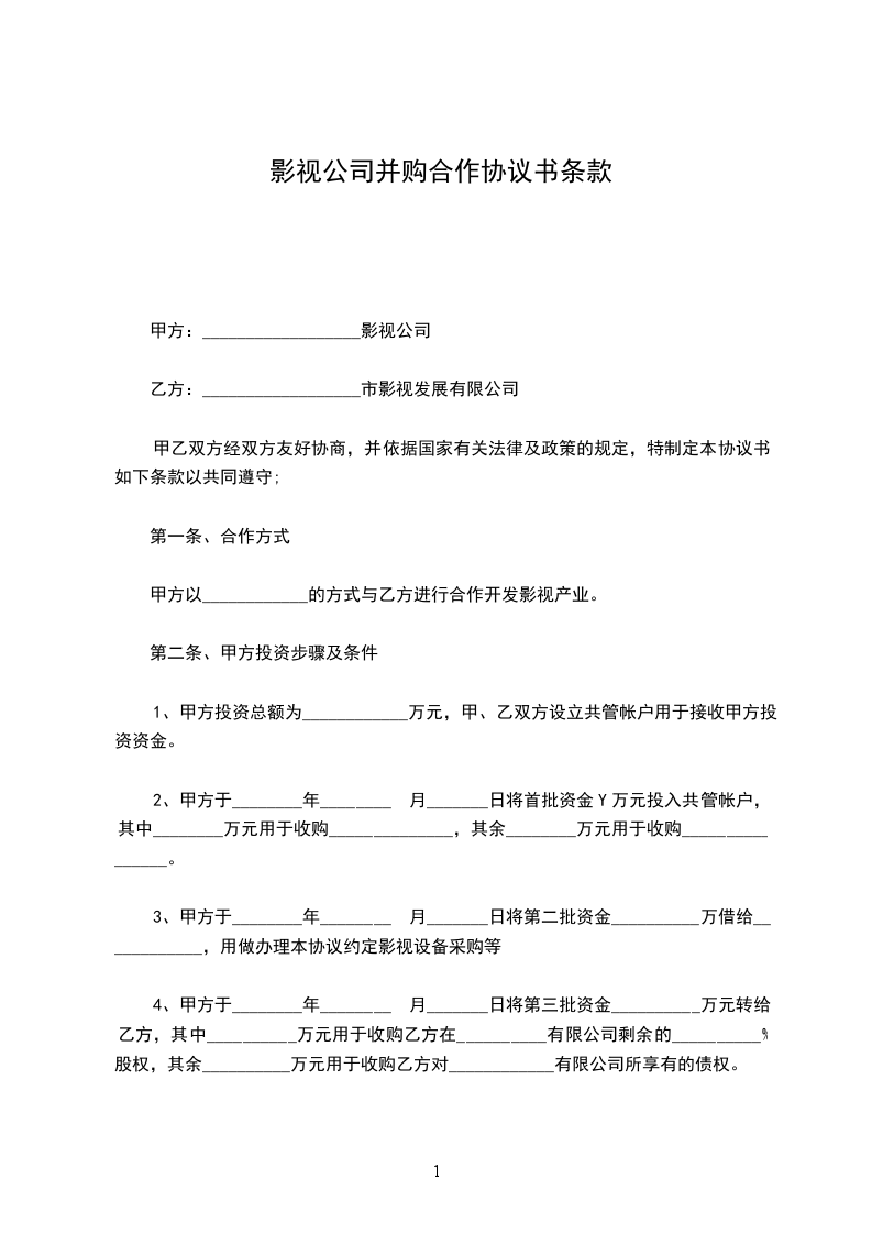 第一条、合作方式甲方以_______________的方式与乙方进行合作开发影视产业。
