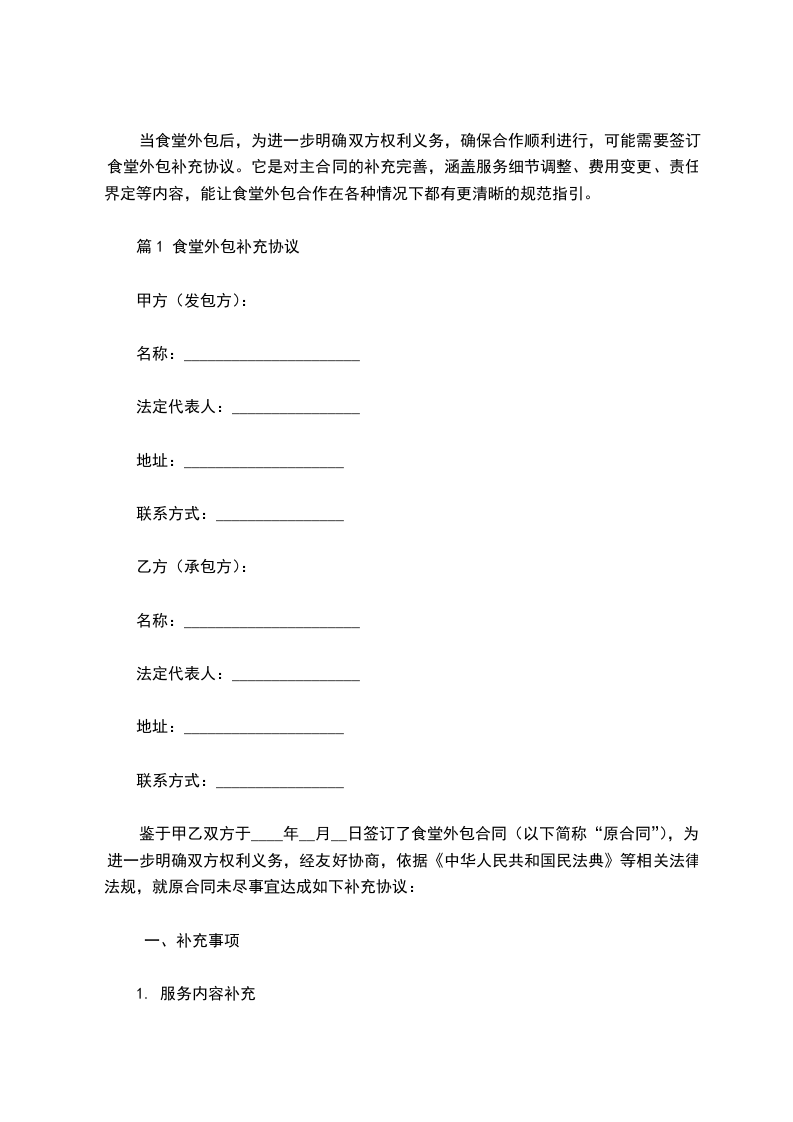 以上为食堂外包补充协议模板,你可根据实际情况进行修改和调整。