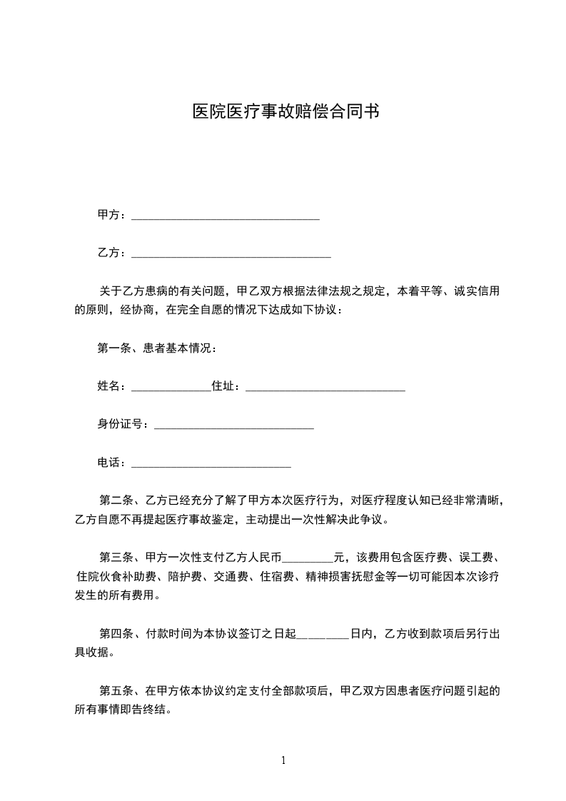 甲乙双方根据《医疗事故处理条例》之规定,经协商,在完全自愿的情况下达成如下协议:
